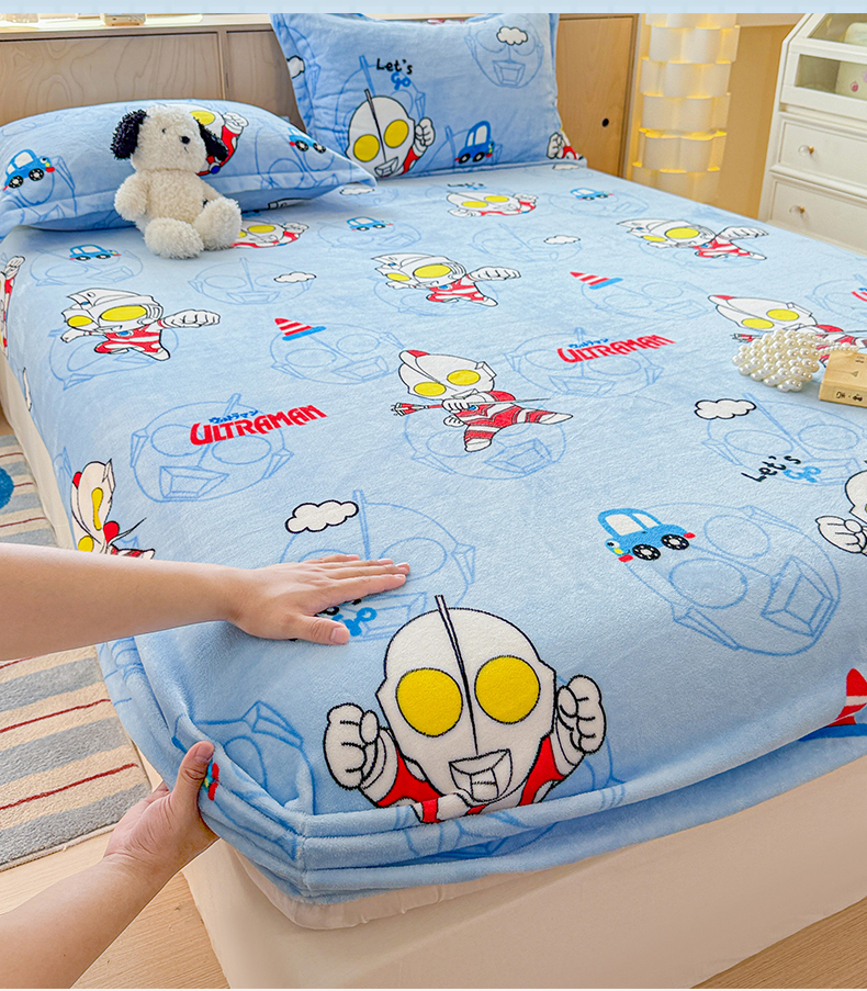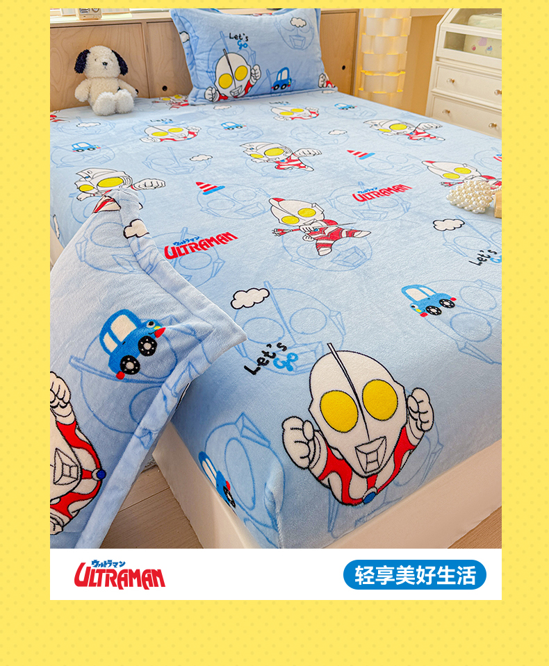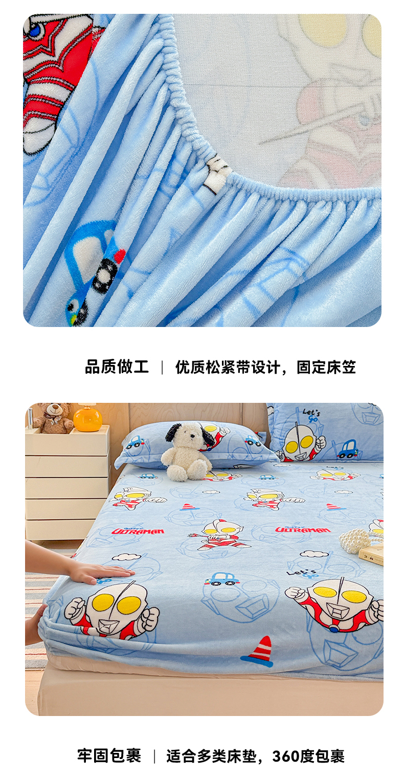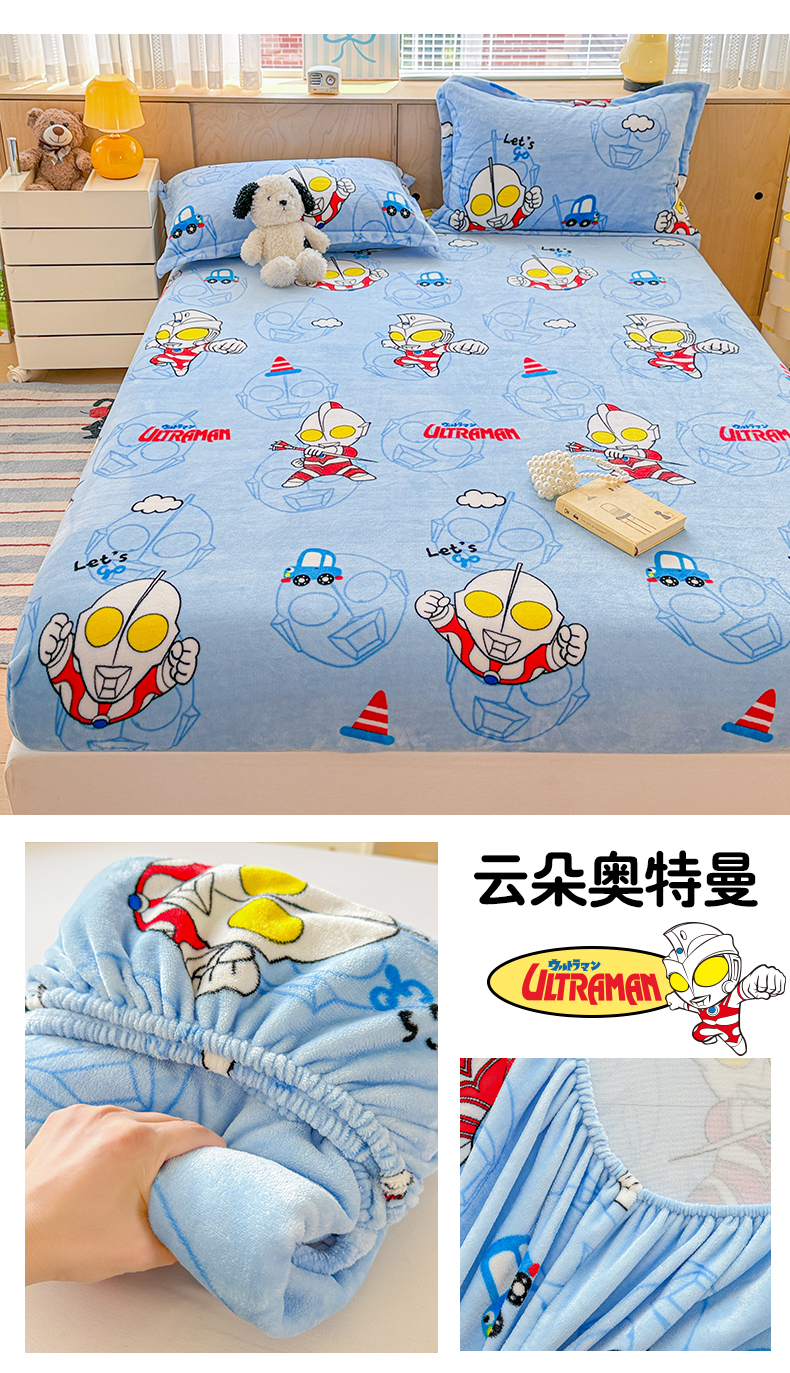 • 91家纺网 家纺一手货源 找家纺 名兮-2025经典奥特曼-三丽鸥高克重印花牛奶绒床笠 云朵奥特曼