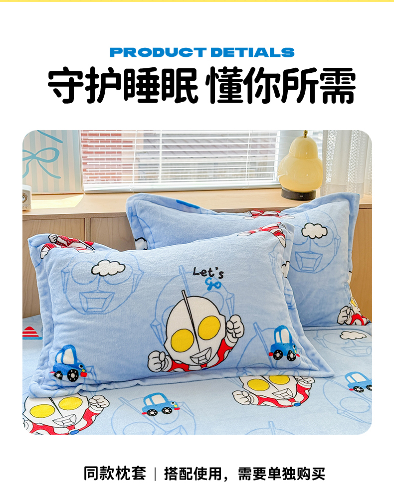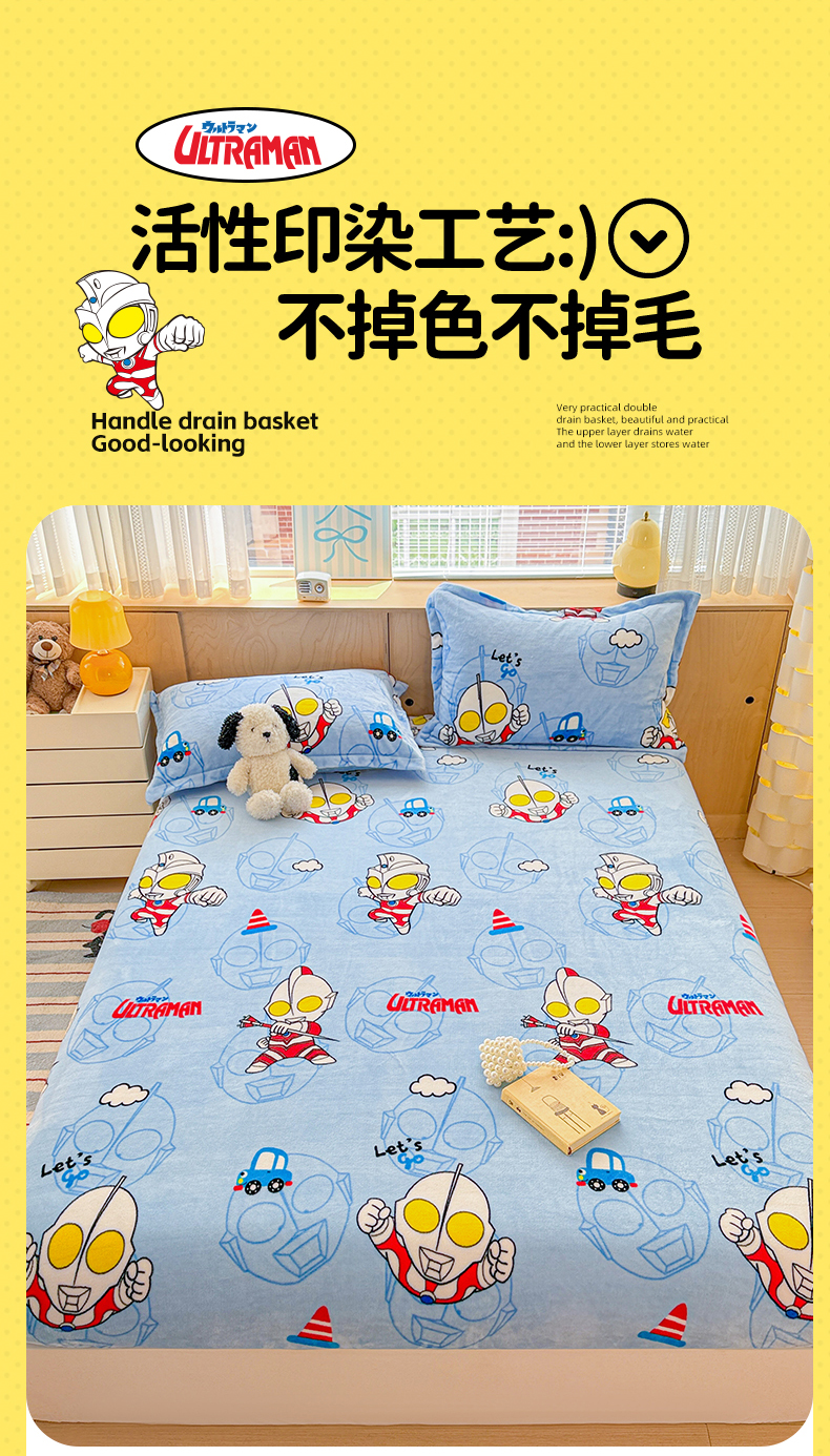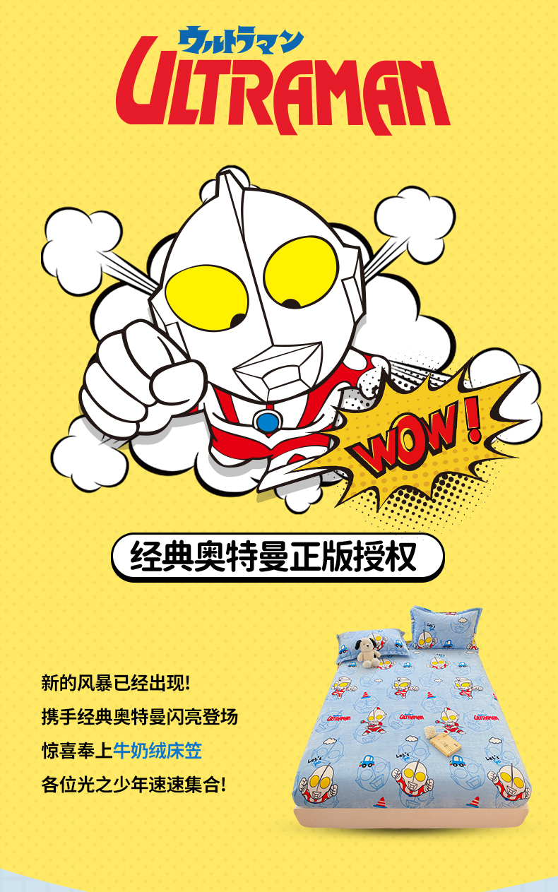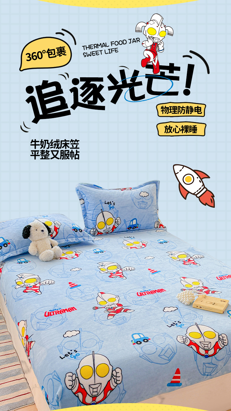 • 91家纺网 家纺一手货源 找家纺 名兮-2025经典奥特曼-三丽鸥高克重印花牛奶绒床笠 云朵奥特曼