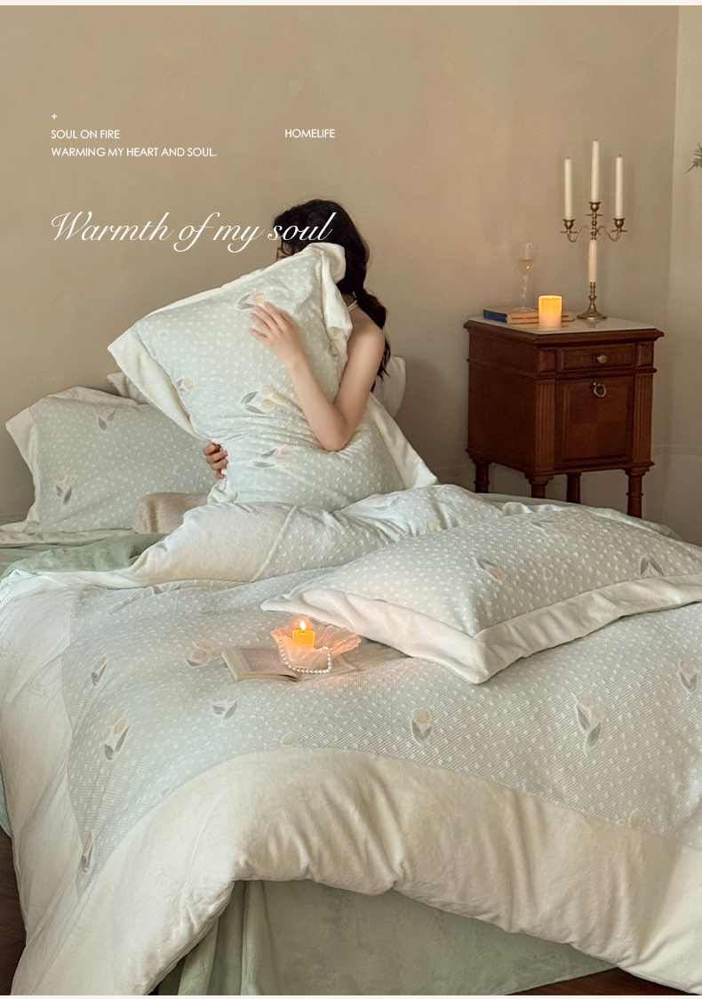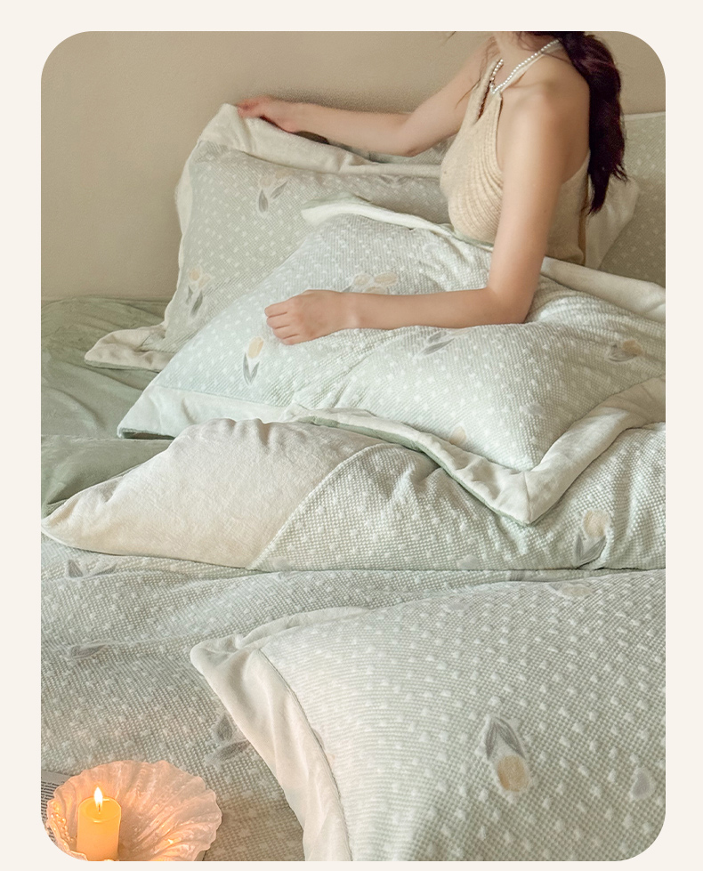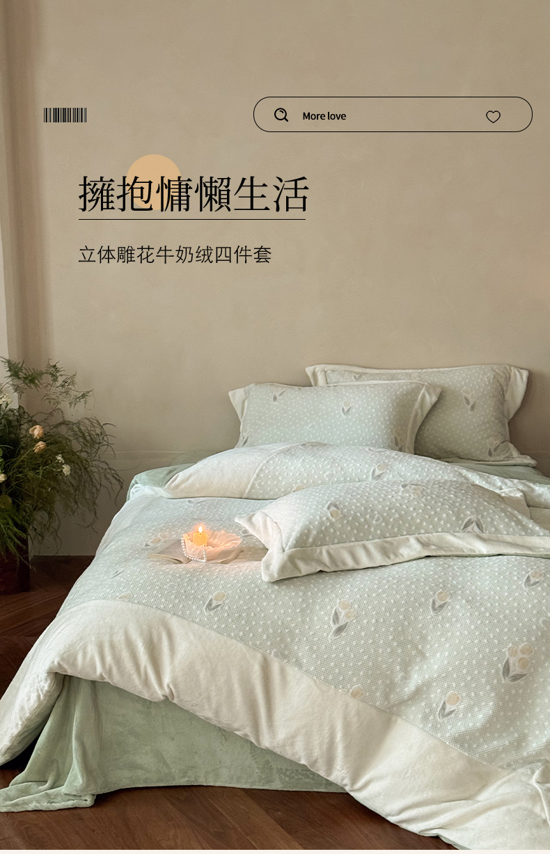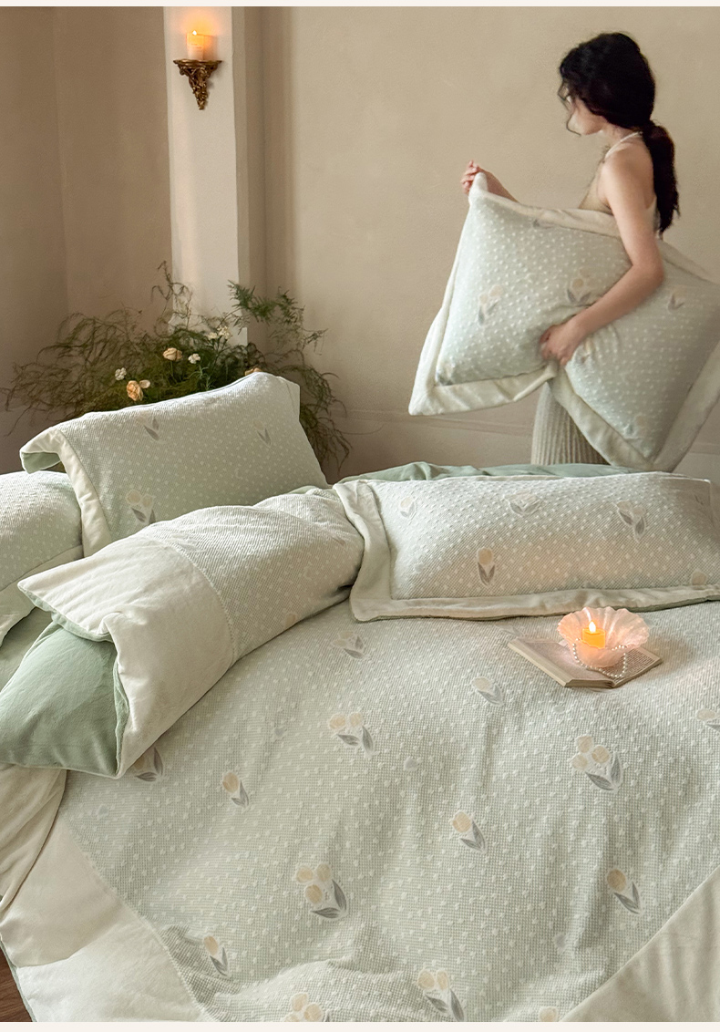 云栖家居 2025秋冬消光加厚立体雕花牛奶绒四件套系列-元英系列(控价不低于199) 郁金香-绿