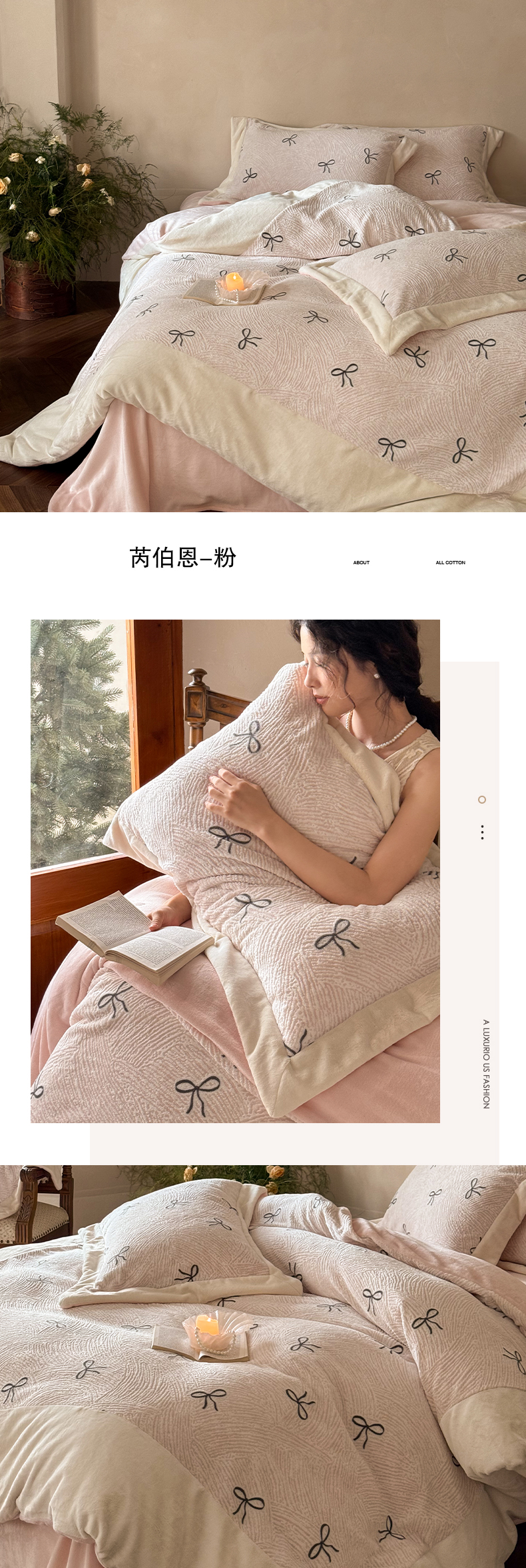 (总)云栖家居 2025秋冬新款加厚印花防静电消光牛奶绒四件套-梦境,梦境-白,梦境-粉,梦境-咖