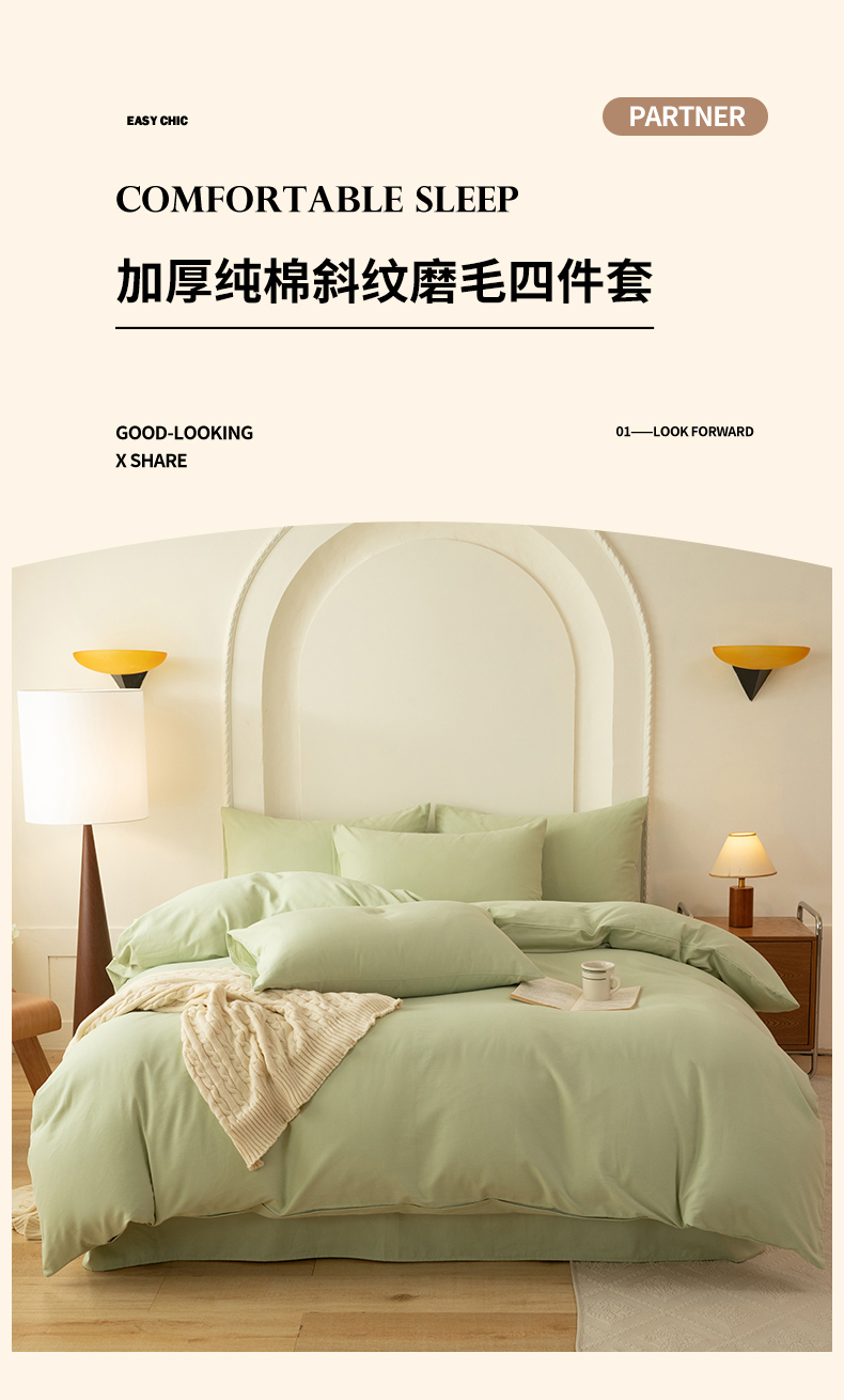 当前位置: 91家纺网 > 商品网购 > 床品套件 > 四件套 > 全棉普通四件套 > 八十八家纺 2025新款纯棉加厚磨毛四件套及单品系列-四件套 加厚果绿