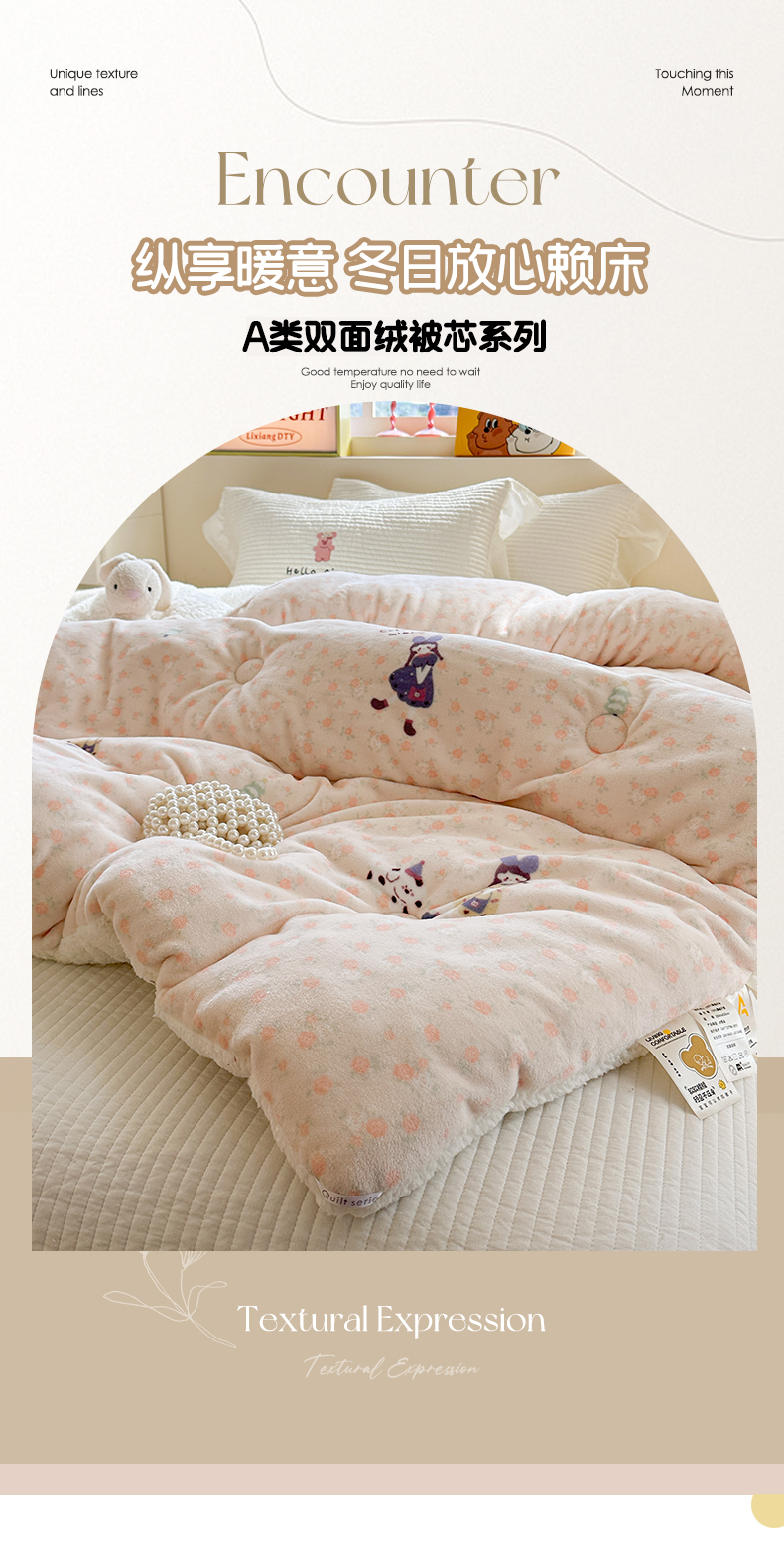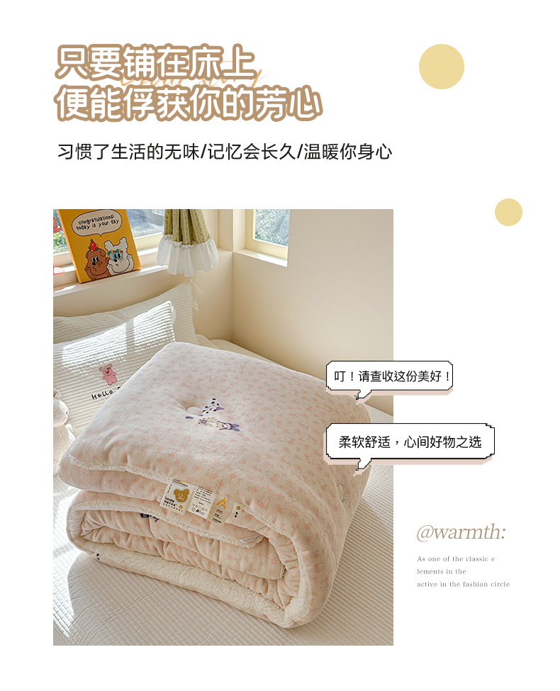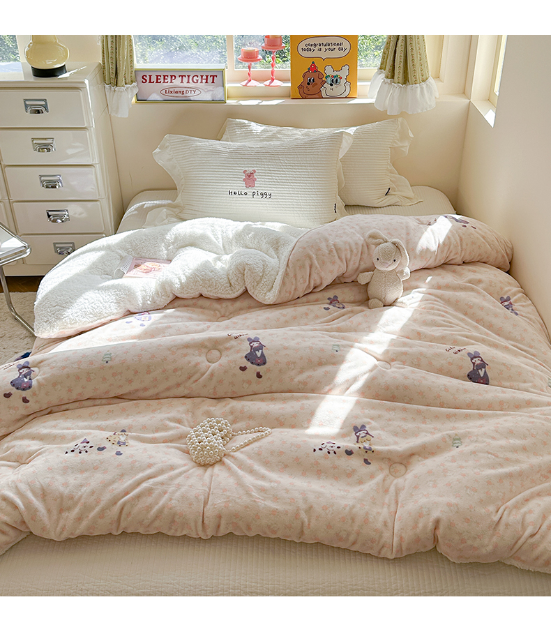 商品名称:寐居家纺 2025新款牛奶绒+羊羔绒被子被芯 春日女孩
