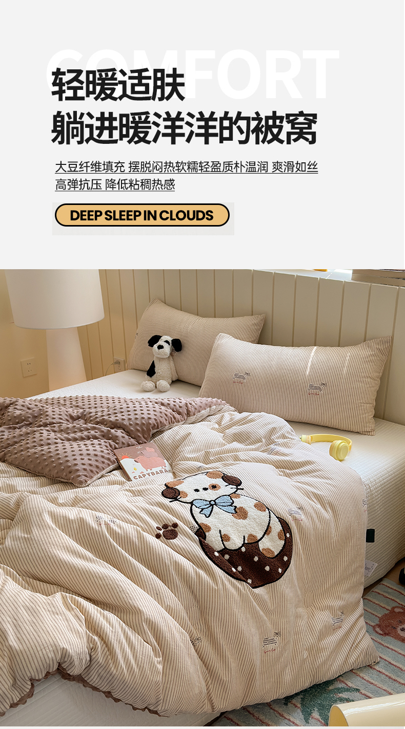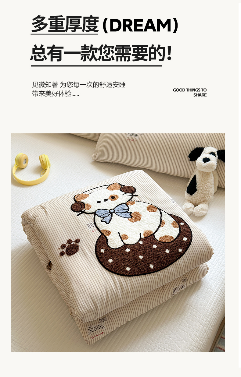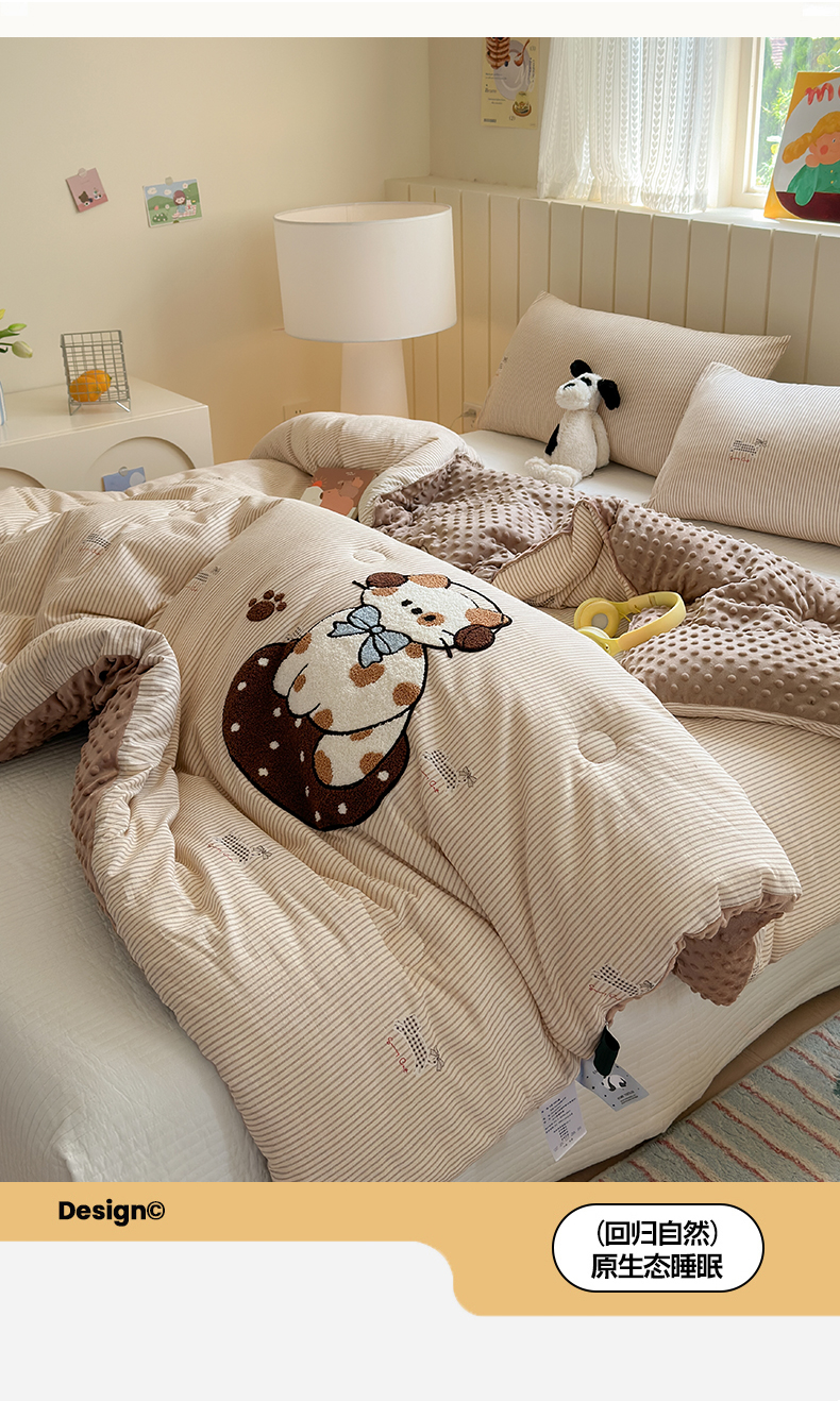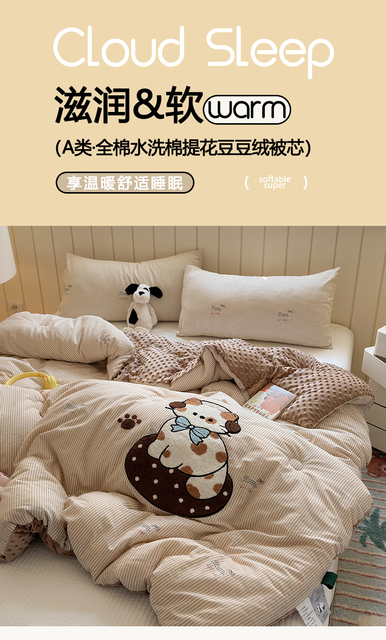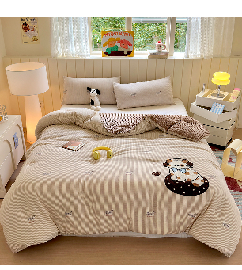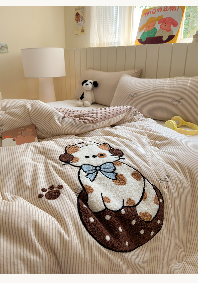 (总)寐居家纺 2025新款贴布绣高克重牛奶绒四件套,安吉拉喵,查理狗,粉糯kitty,皮皮布布