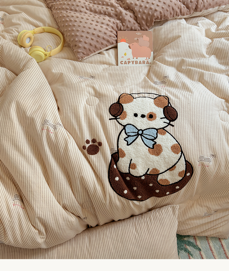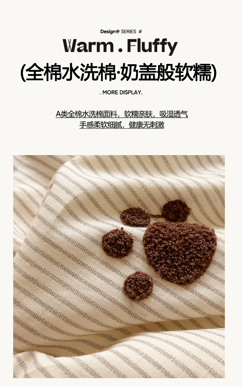 商品名称:寐居家纺 2025新款全棉水洗棉豆豆绒被芯被子 焦糖猫猫
