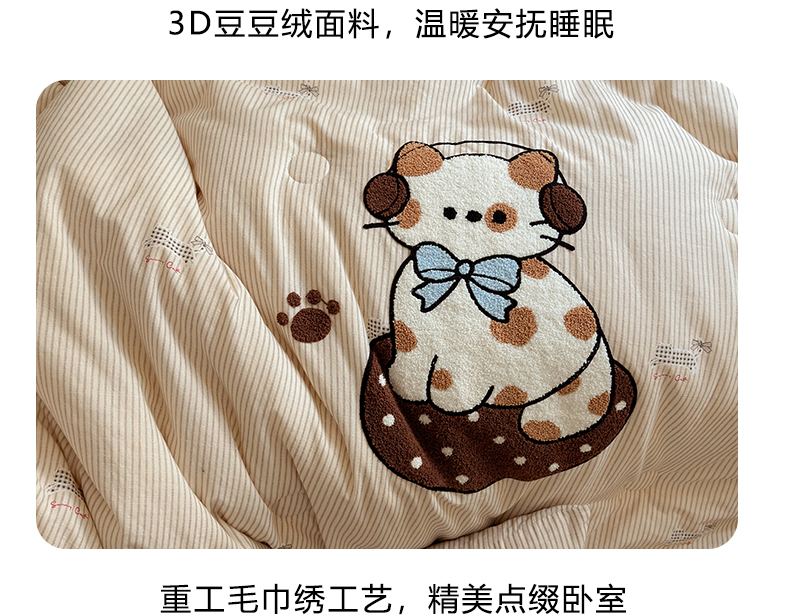 寐居家纺 2025新款全棉水洗棉豆豆绒被芯被子 焦糖猫猫