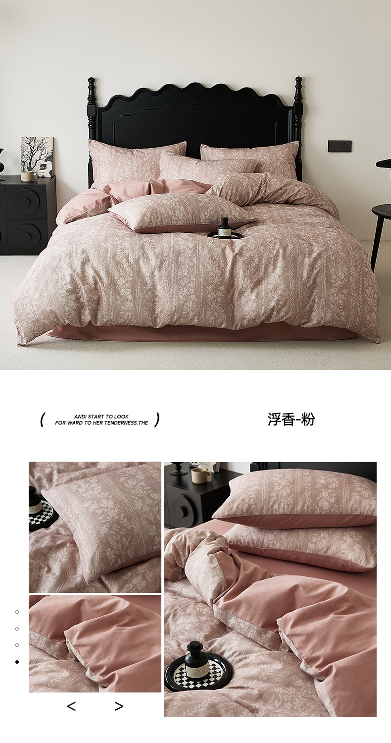 当前位置: 91家纺网 > 商品网购 > 床品套件 > 四件套 > 全棉普通四件套 > 禾时 2025新款全棉纯棉双层纱印花四件套-暗合 浮香-粉