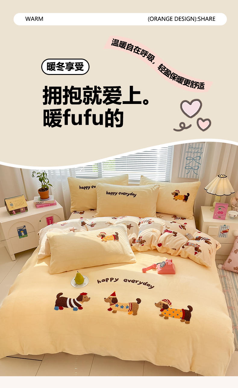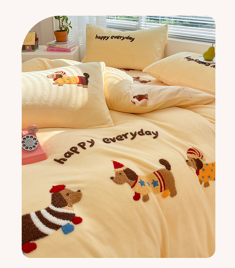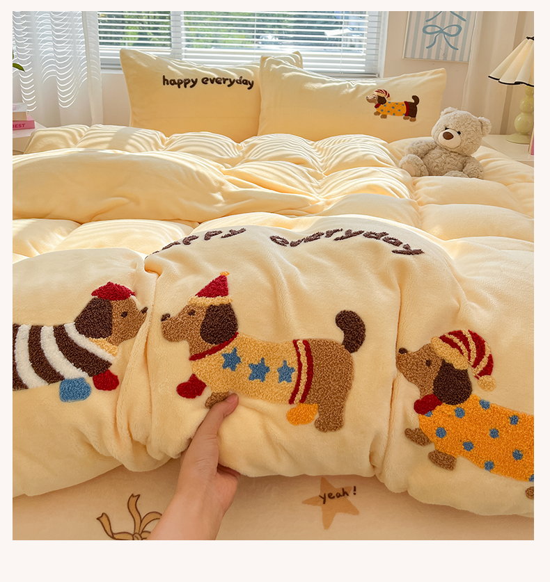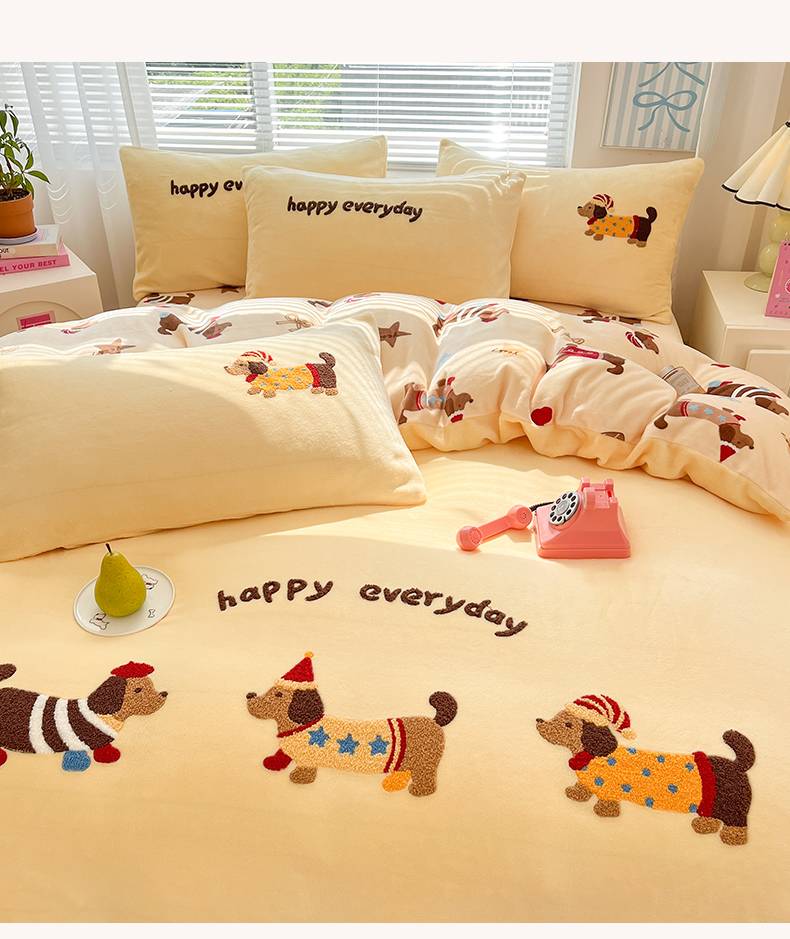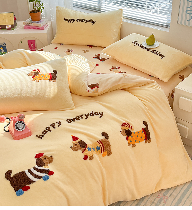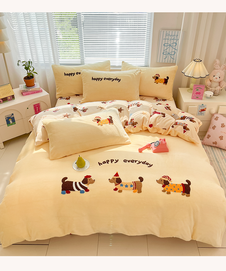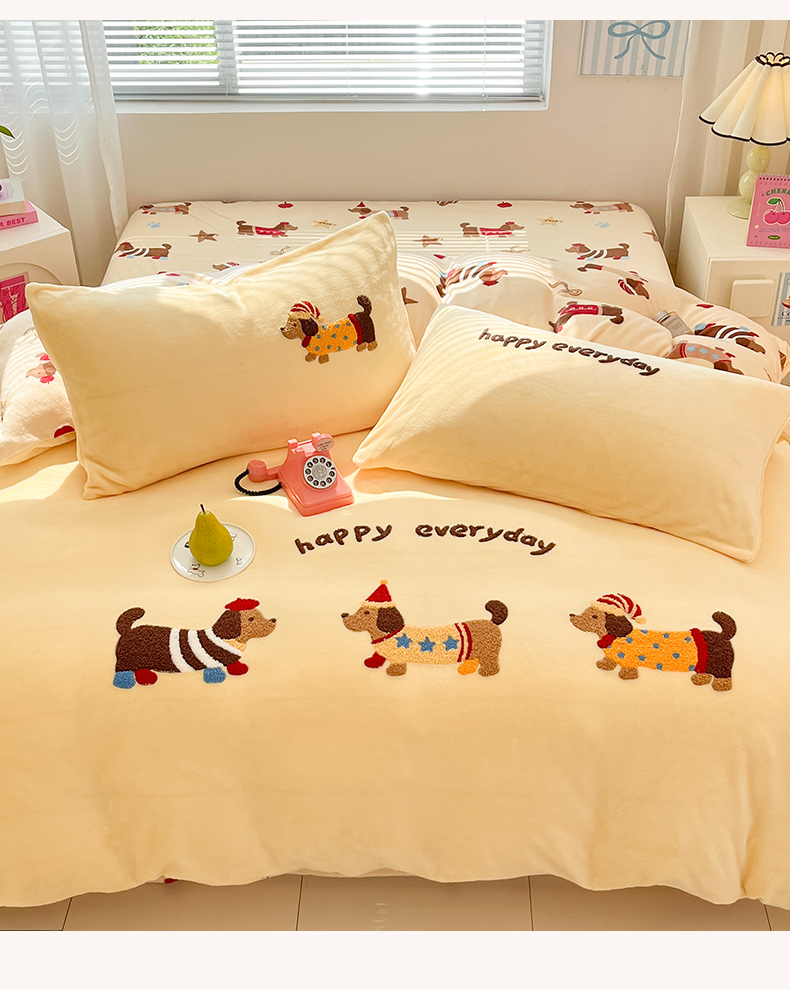 当前位置: 91家纺网 > 商品网购 > 床品套件 > 四件套 > 牛奶绒四件套 > 寐居家纺 2025新款牛奶绒大版毛巾绣床单款四件套 腊肠萌犬
