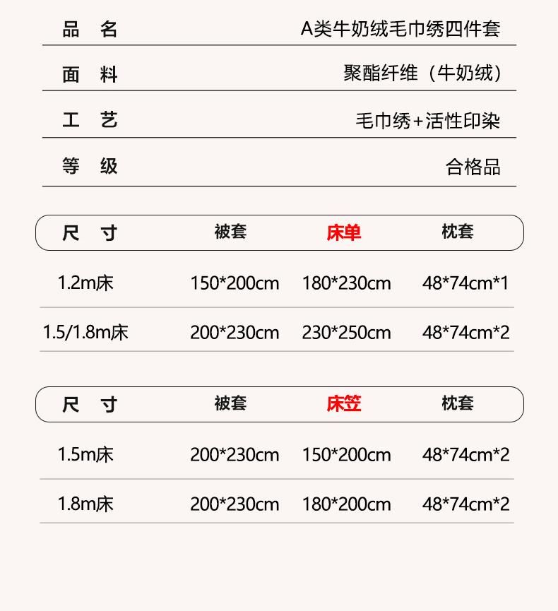 【床笠款】1.8四件套-被套200x230 | ¥110.00 |