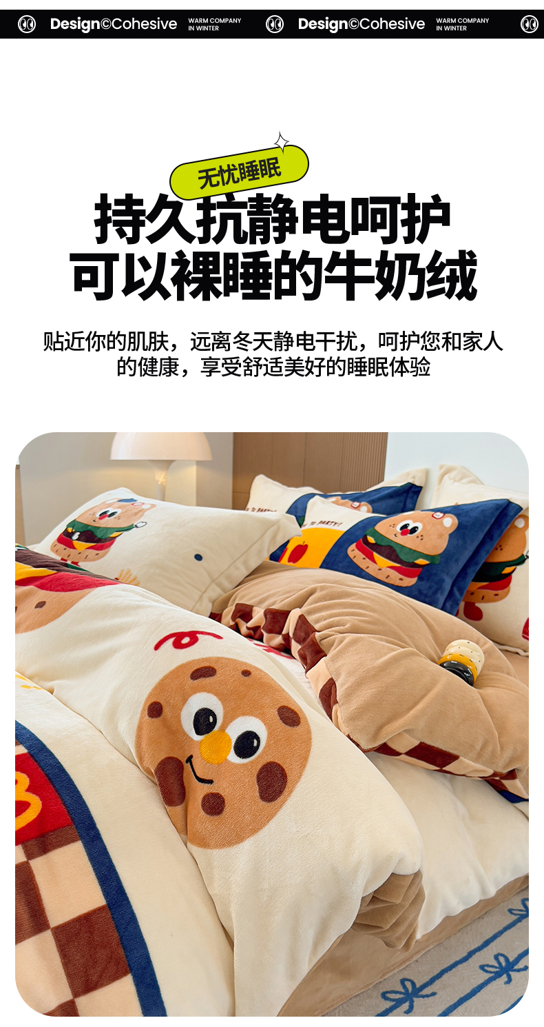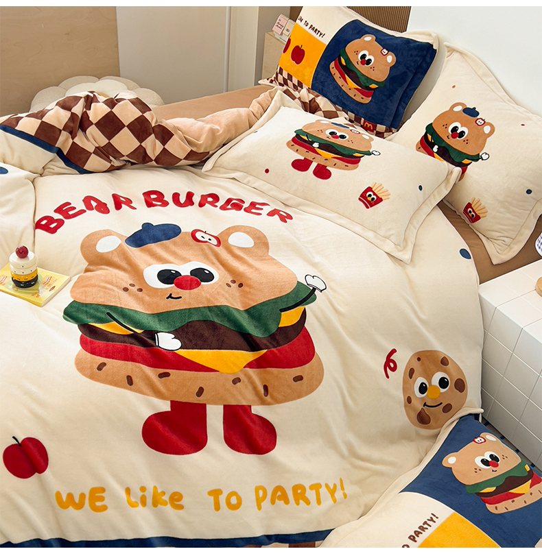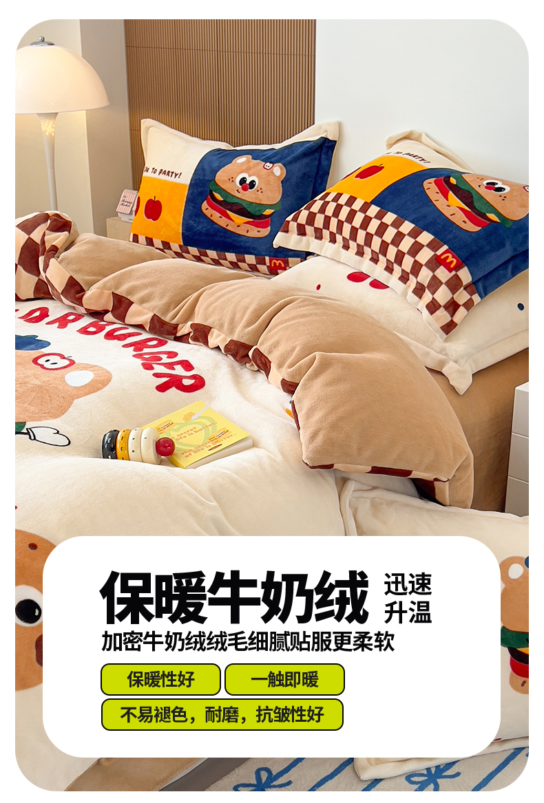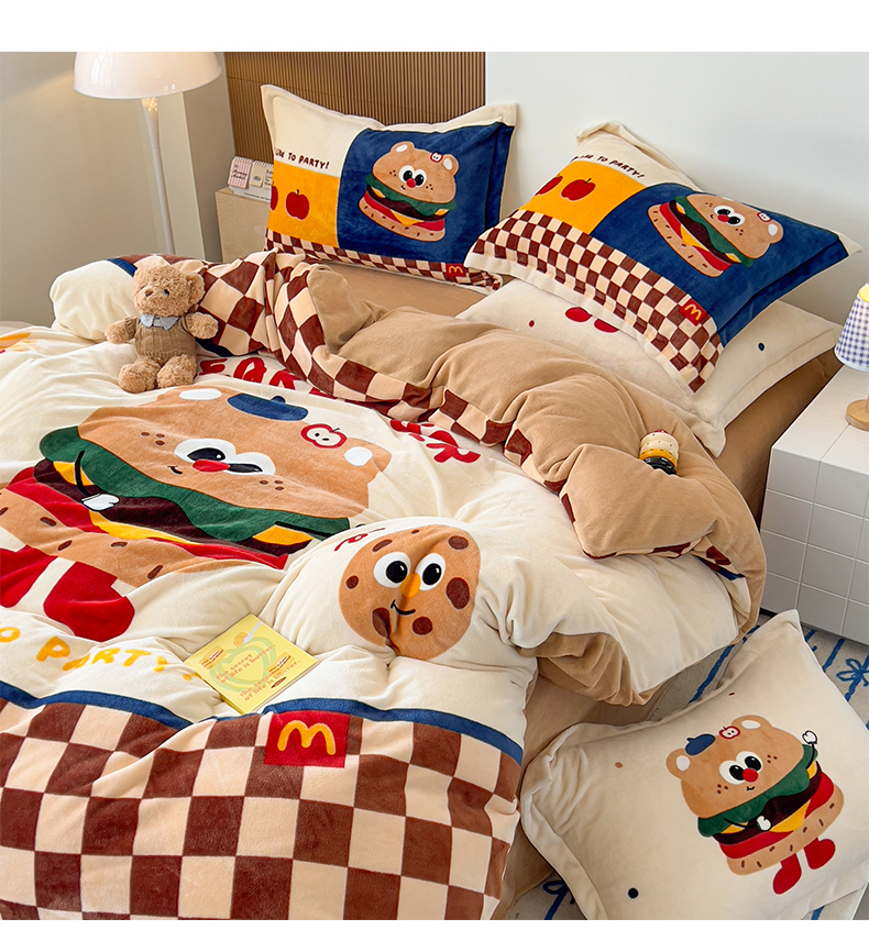 当前位置: 91家纺网 > 商品网购 > 床品套件 > 四件套 > 其它四件套 > 慕晨 2025新款卡通可爱大版印花牛奶绒加厚保暖小清新四件套直播 玩趣汉堡