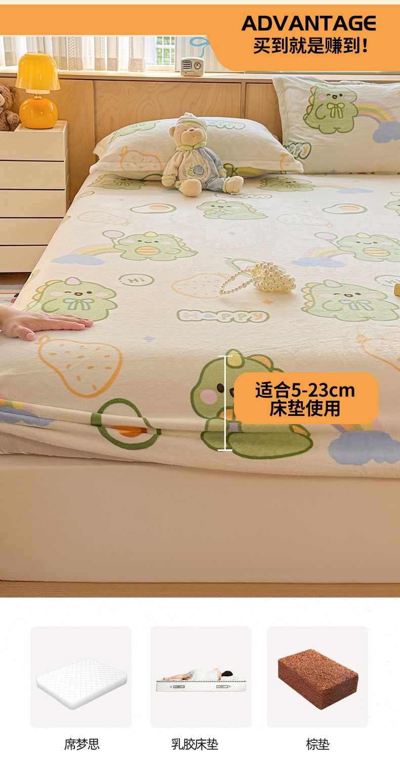 • 91家纺网 家纺一手货源 找家纺 名兮家居 2025新款高克重印花牛奶绒单床笠床笠单件 企鹅宝宝