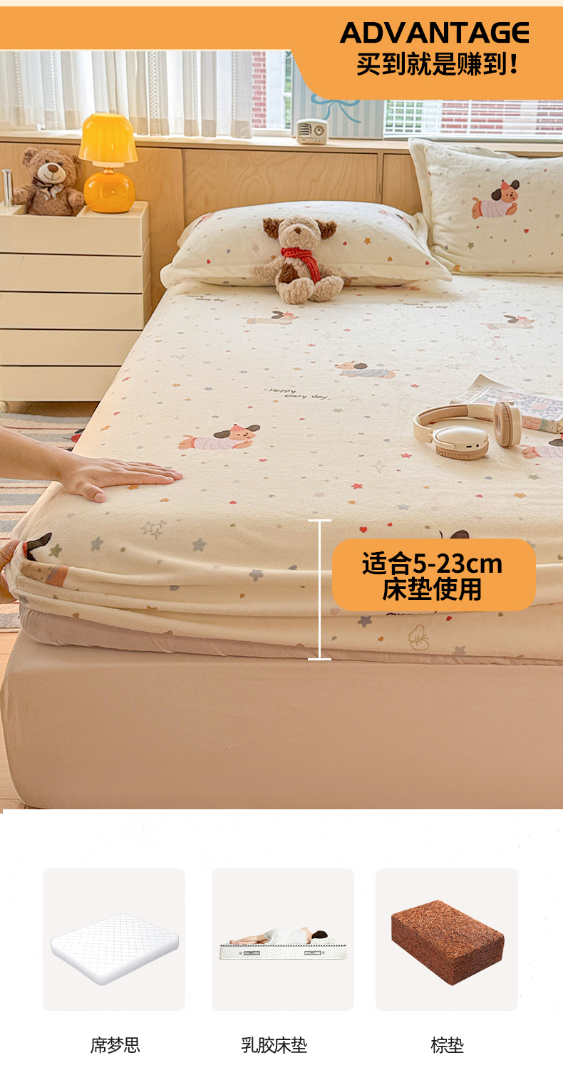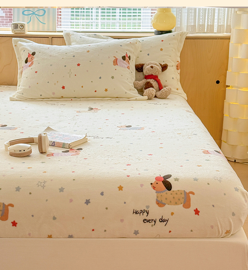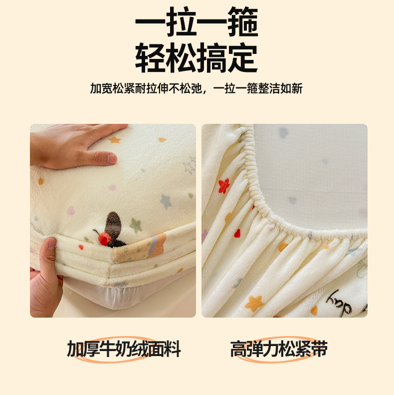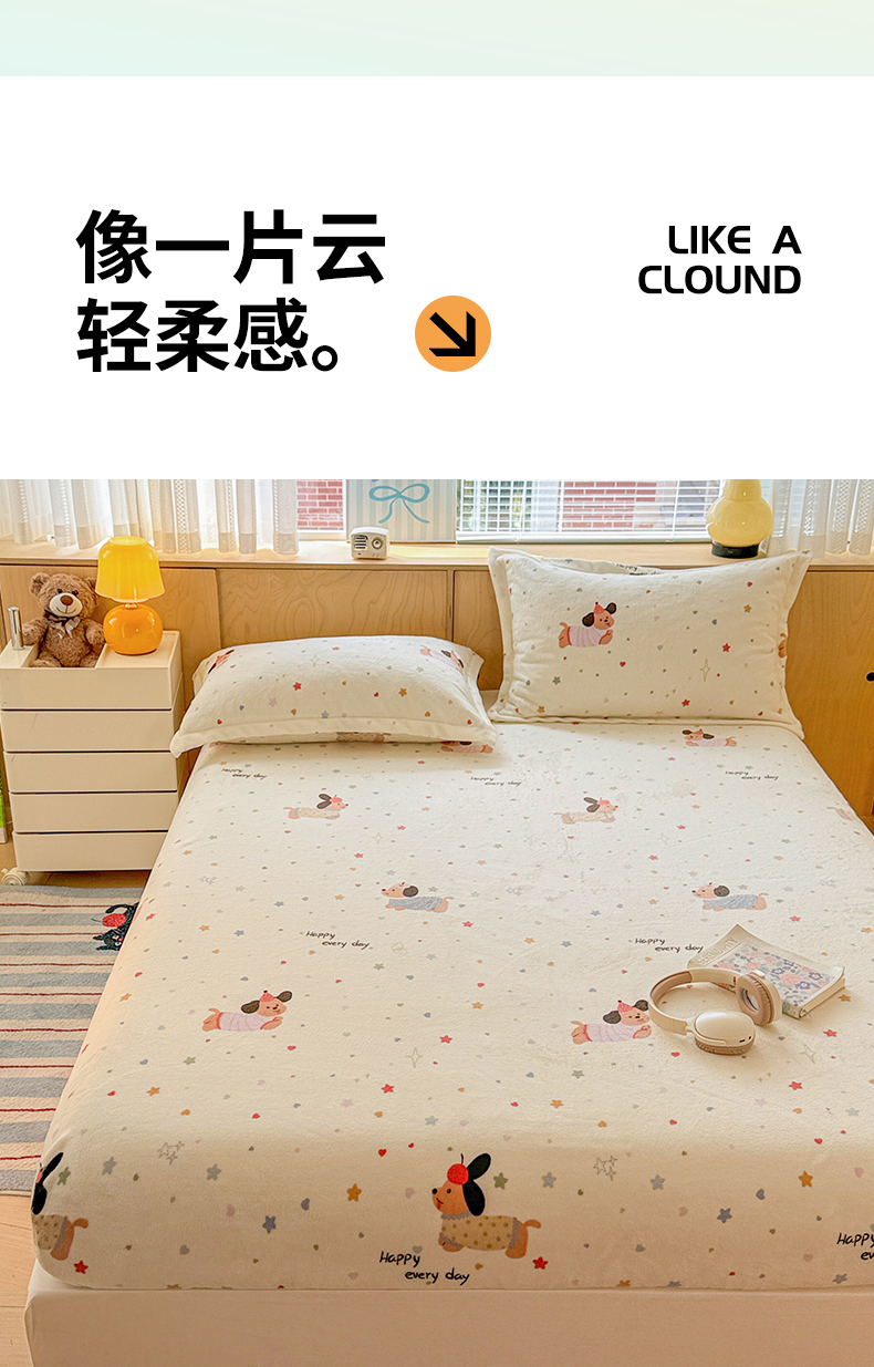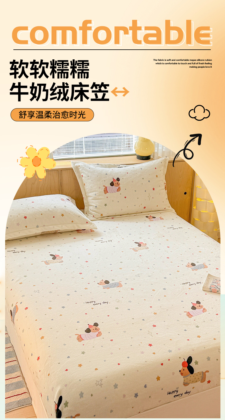 名兮家居 2025新款高克重印花牛奶绒单床笠床笠单件 星星狗