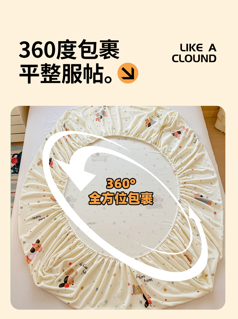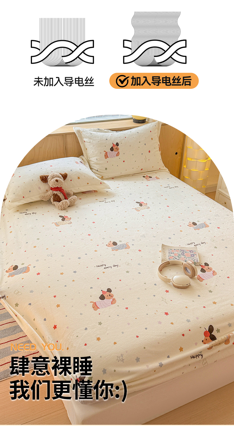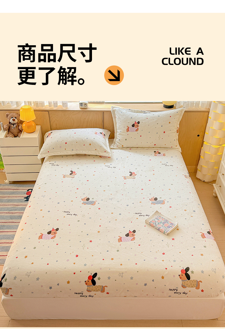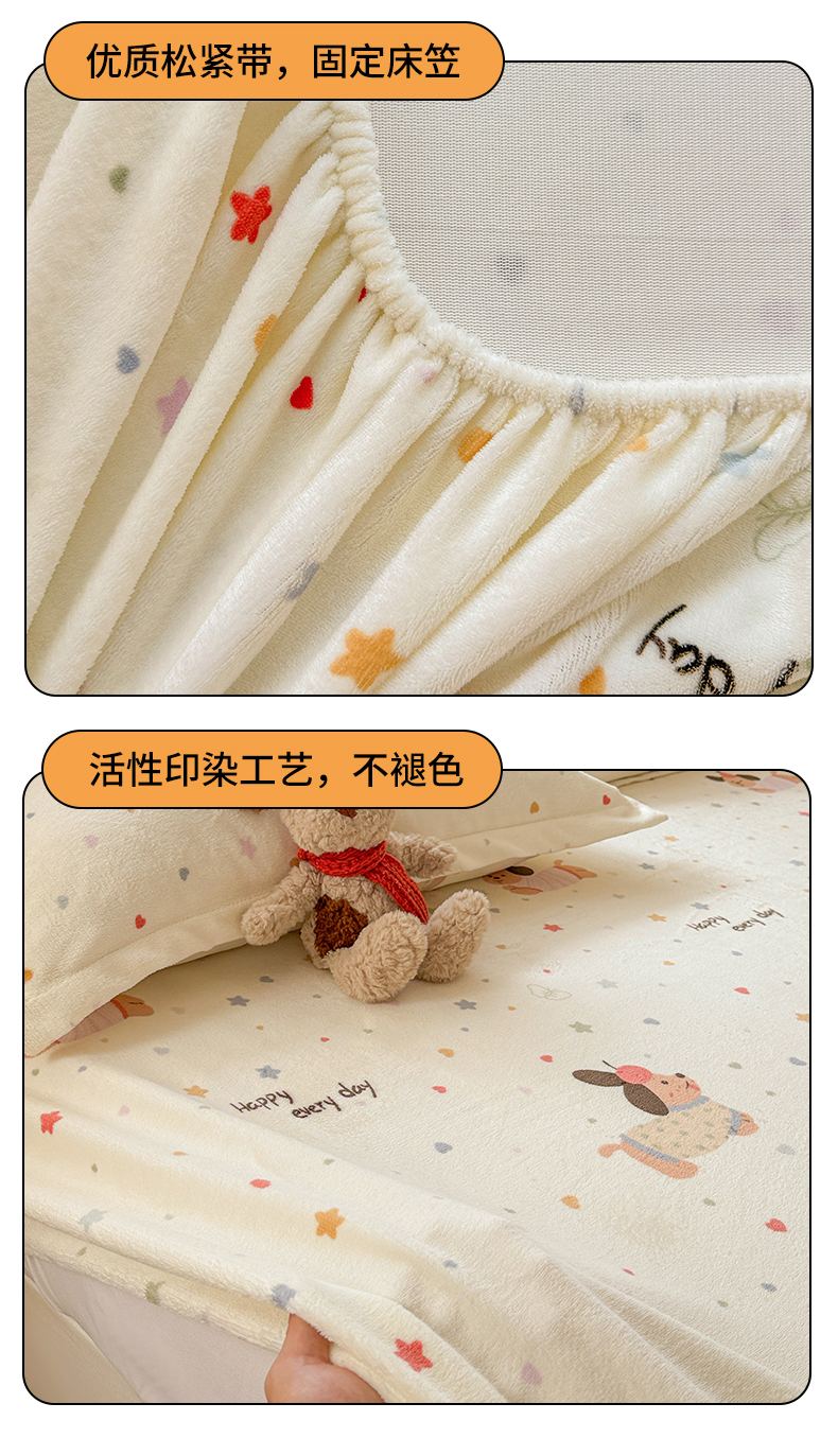 • 91家纺网 家纺一手货源 找家纺 名兮家居 2025新款高克重印花牛奶绒单床笠床笠单件 星星狗