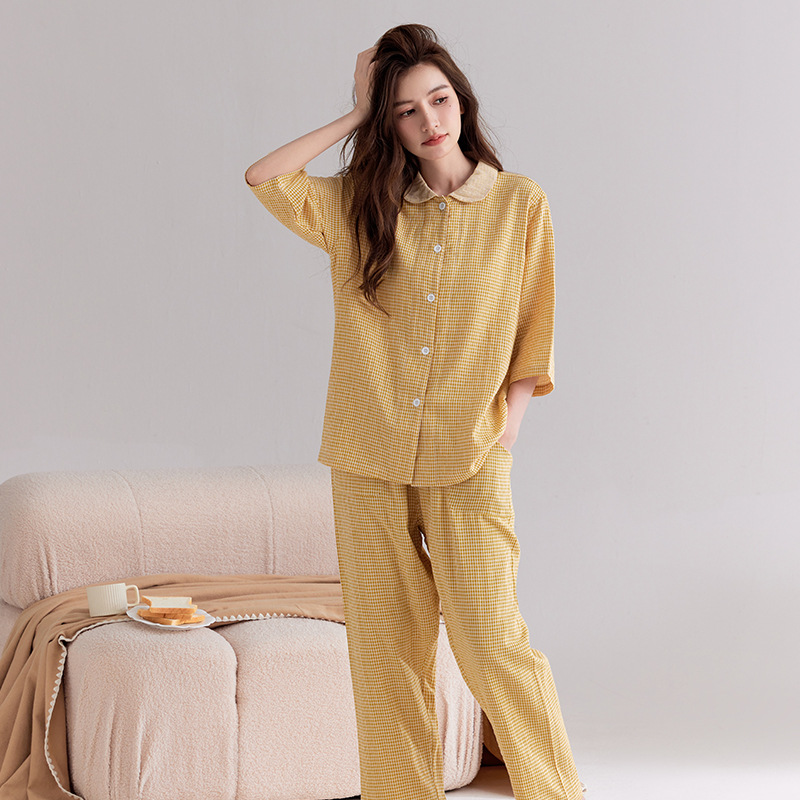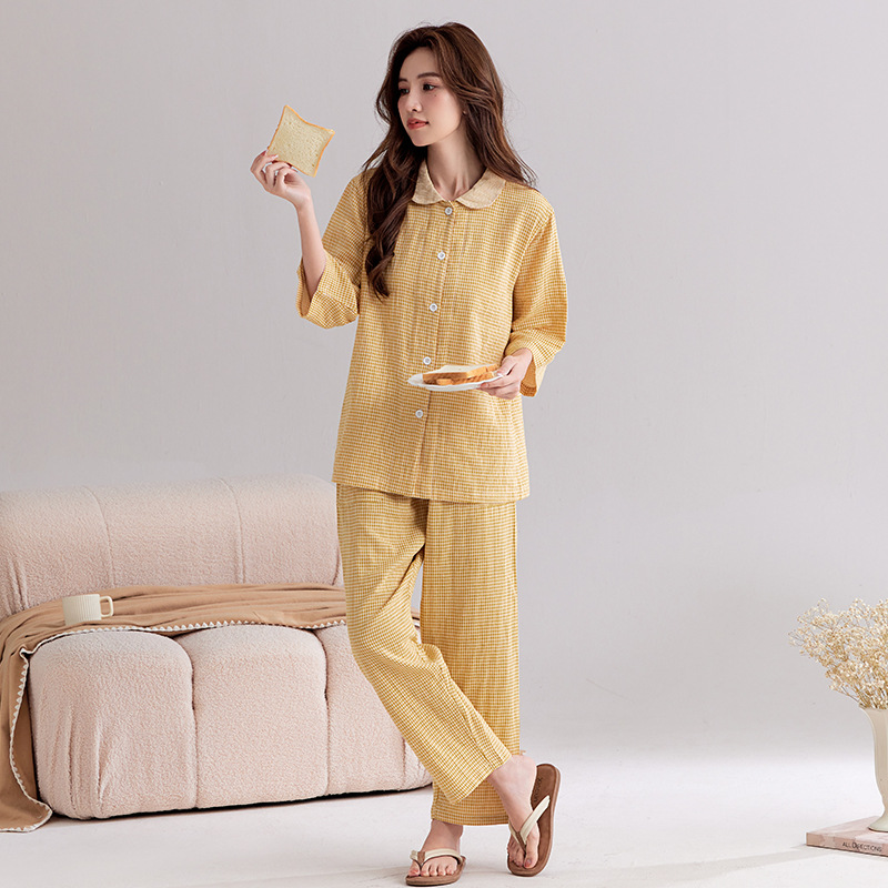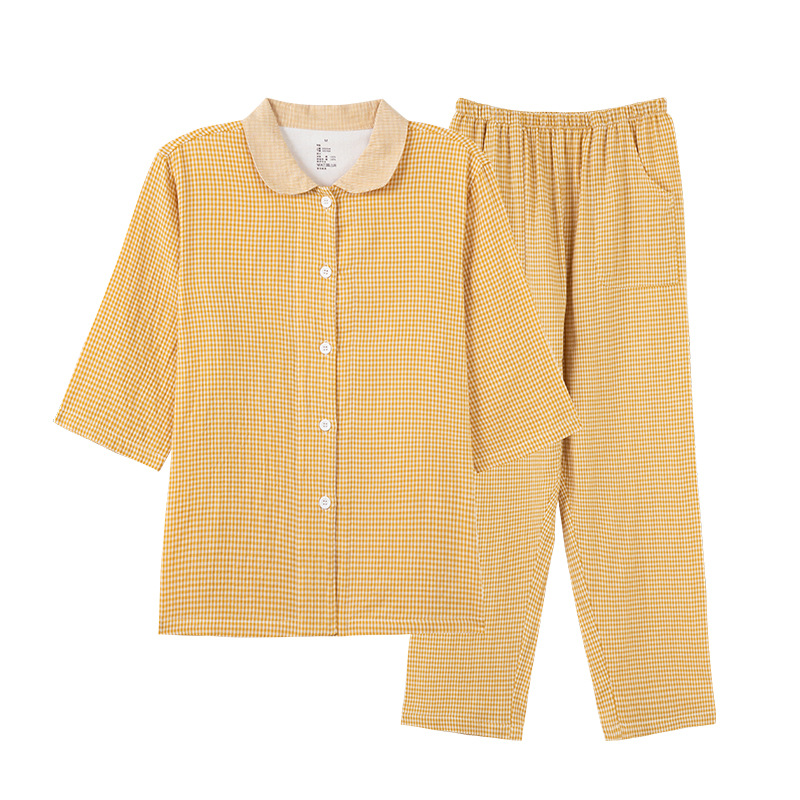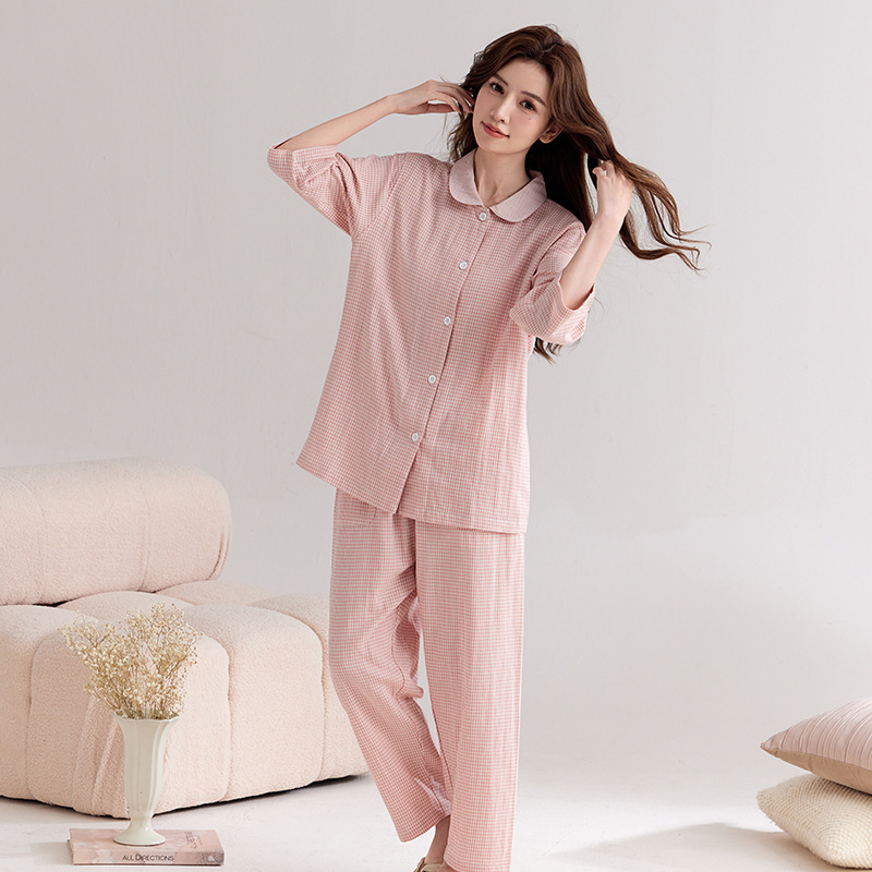 (总)良品汇馆 2025新款双层纱七分袖细格纹睡衣