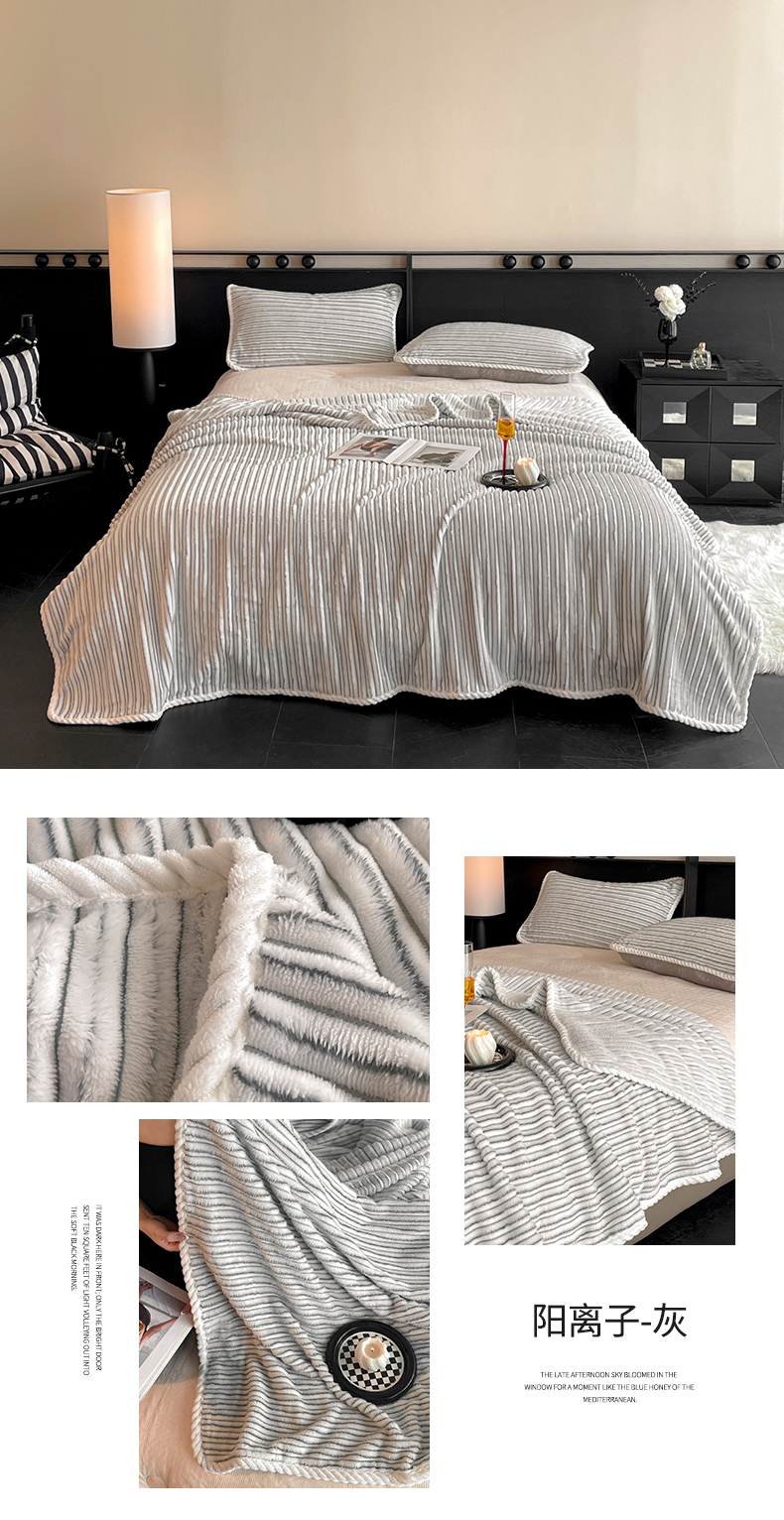 商品名称:(总)小叮当家纺仓储工厂店 2025新款亲肤舒适成品抽条阳离子毛毯毯子-阳离子