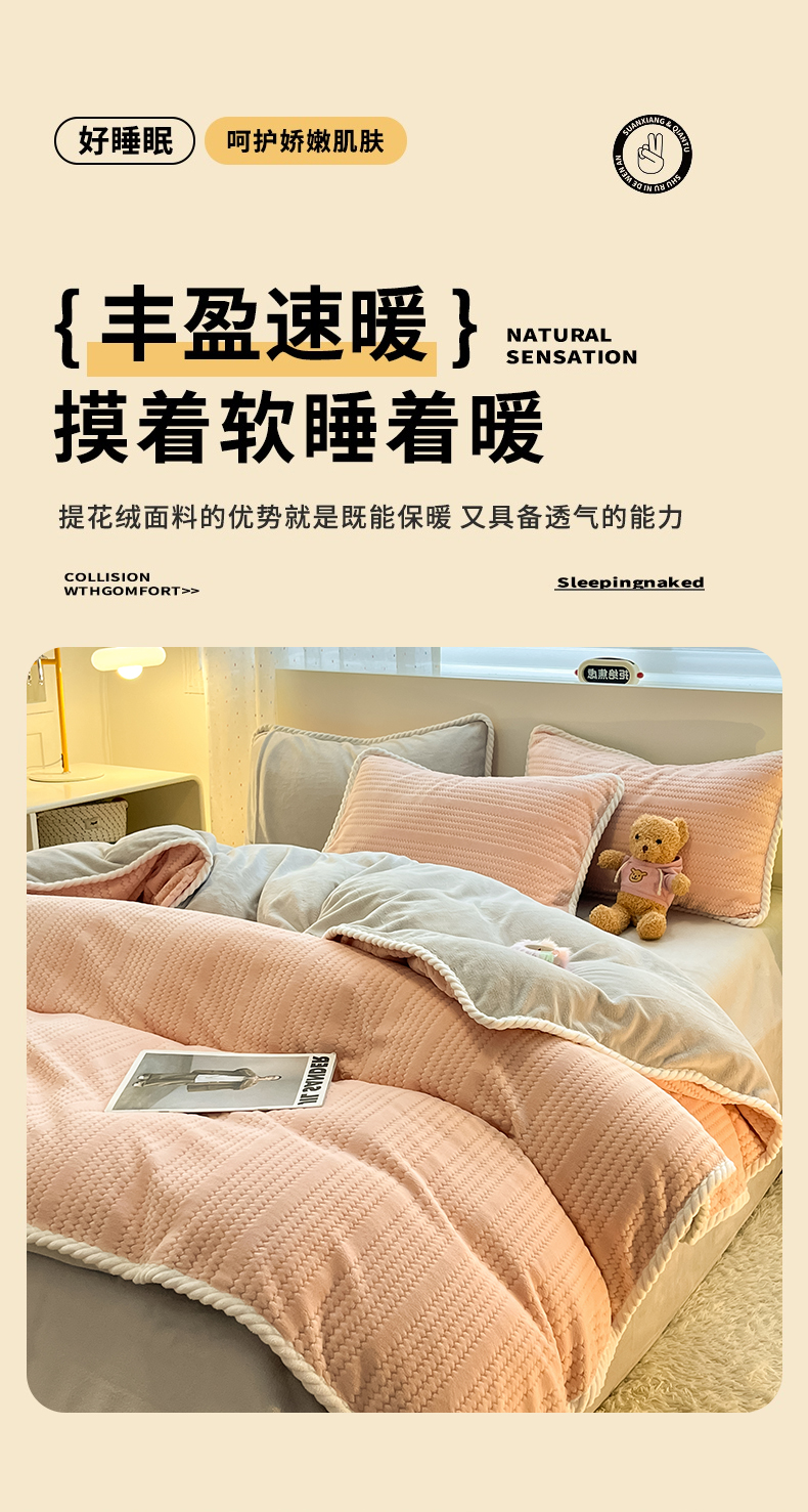 当前位置: 91家纺网 > 商品网购 > 床品套件 > 四件套 > 牛奶绒四件套 > 小叮当家纺仓储工厂店 2025新款亲肤舒适成品提花包边牛奶绒四件套-提花 提花-奶黄