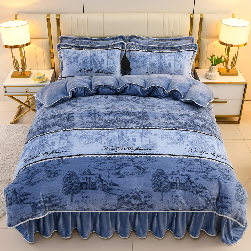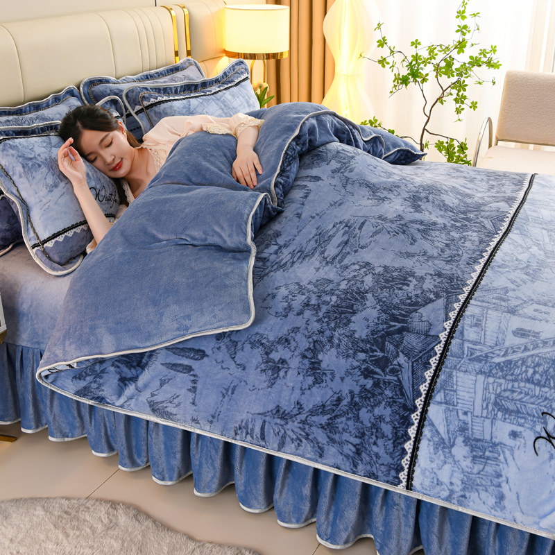 商品名称:沐妍家纺 2025新款8斤加厚保暖金貂绒牛奶绒印花四件套 水墨年华