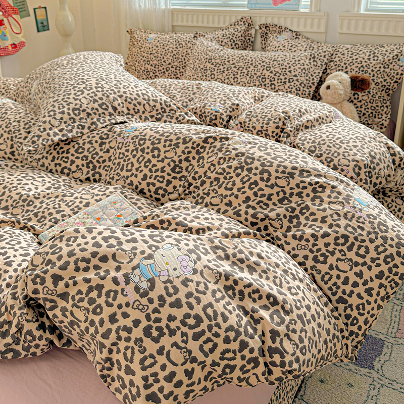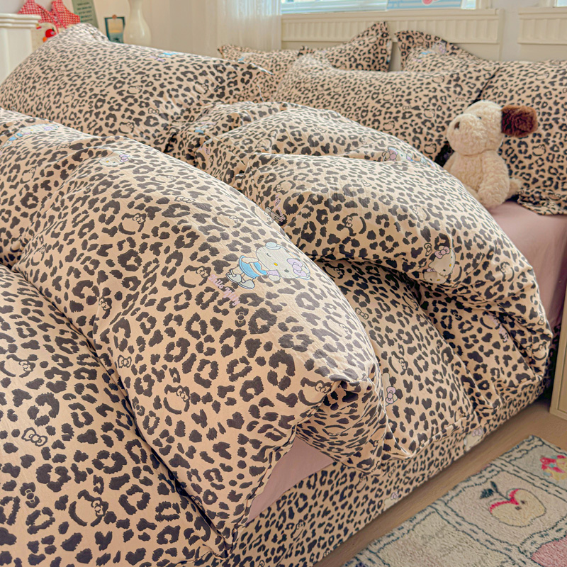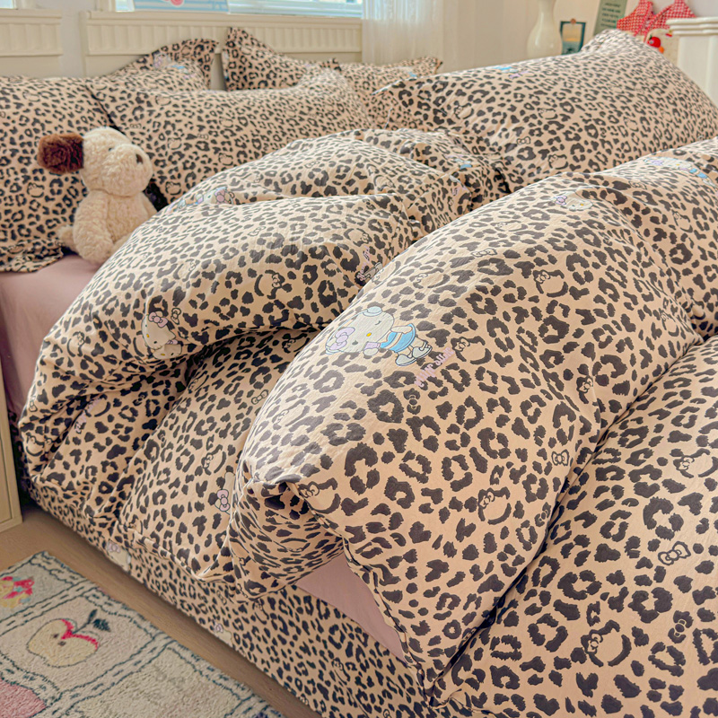 梦莱斯 2025新款韩国小布袋古法云感棉四件套 豹纹