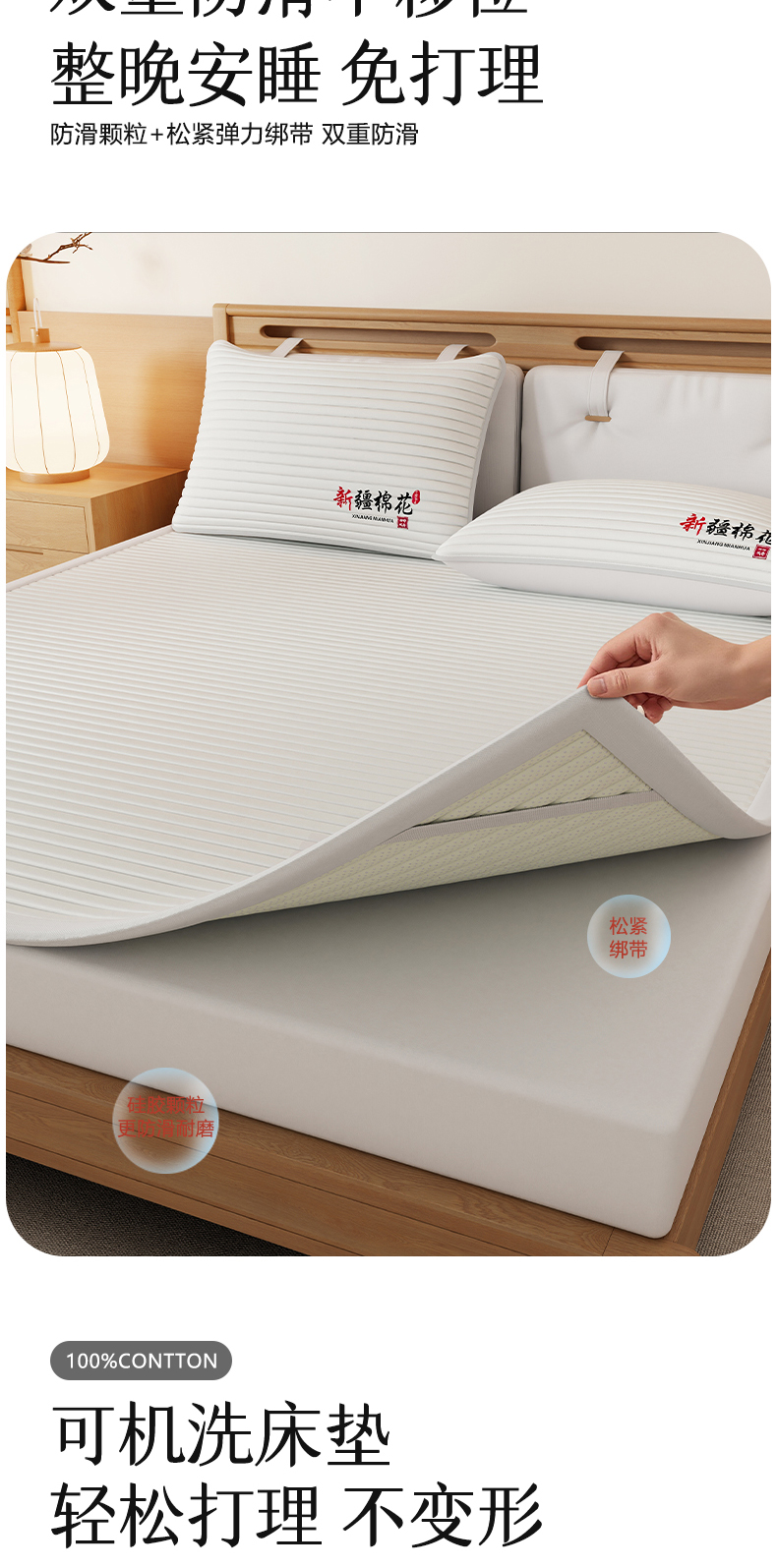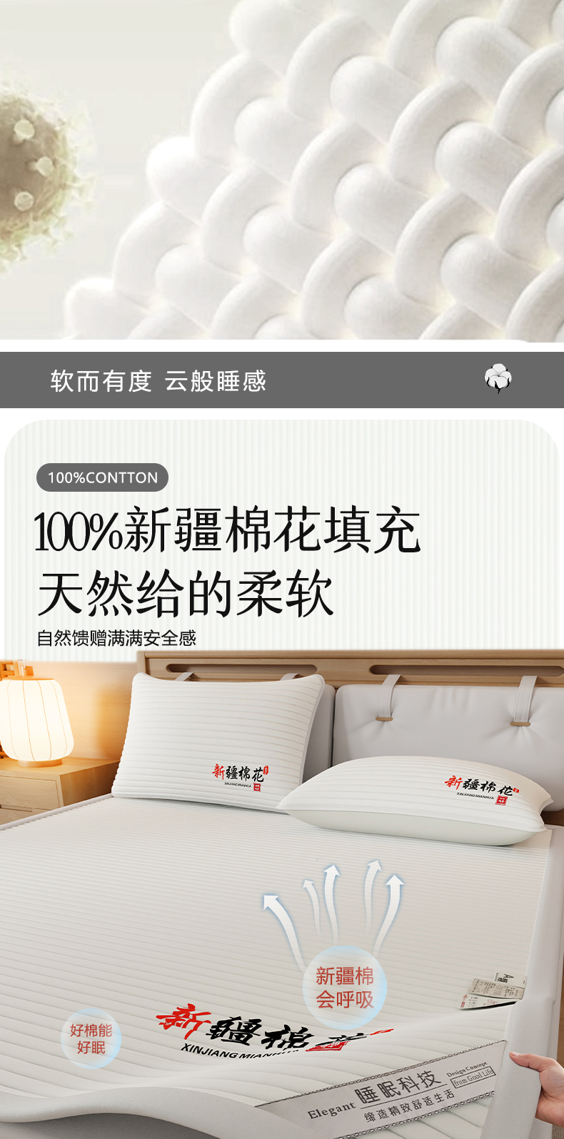 缔莱(十三铭)被业 2025新款A类新疆水洗棉花床垫床护垫 新疆棉花软垫-白色