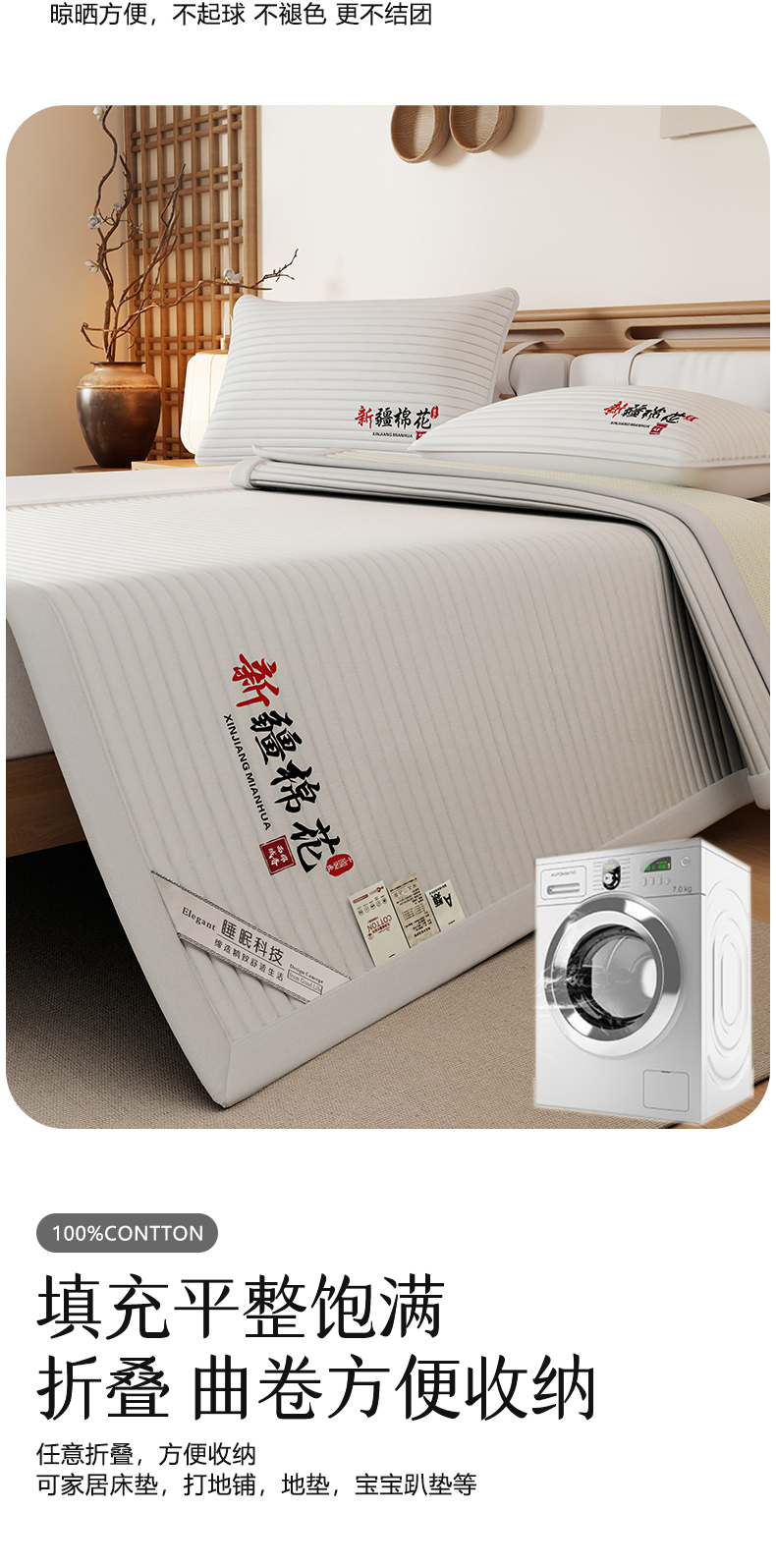 (总)缔莱(十三铭)被业 2025新款A类新疆水洗棉花床垫床护垫,新疆棉花软垫-白色,新疆棉花软垫-灰色,新疆棉花软垫-咖色,新疆棉花软垫-绿色,新疆棉花软垫-米色