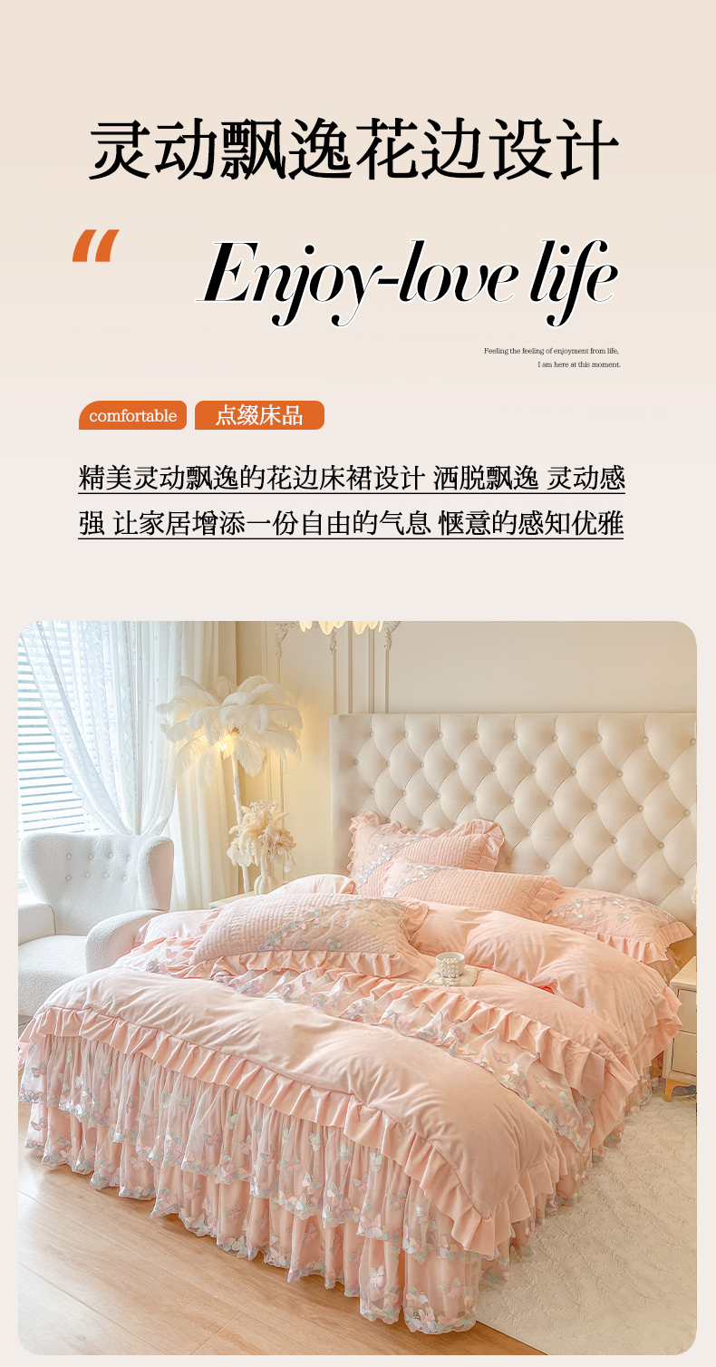 (总)瑞宝 2025新款宝宝绒重工刺绣花边床裙四件套-梦蝶(控价 318起),梦蝶-艾玛橙,梦蝶-蜜粉,梦蝶-豆绿,梦蝶-奶油米,梦蝶-浅透玉,梦蝶-香芋紫