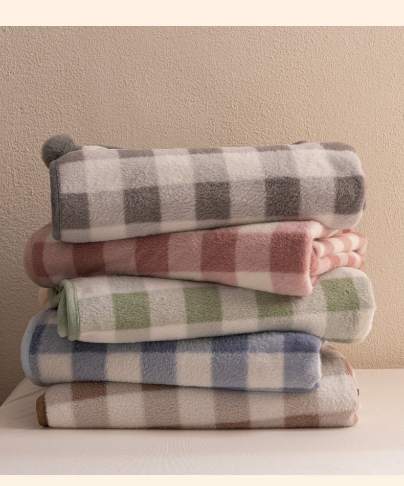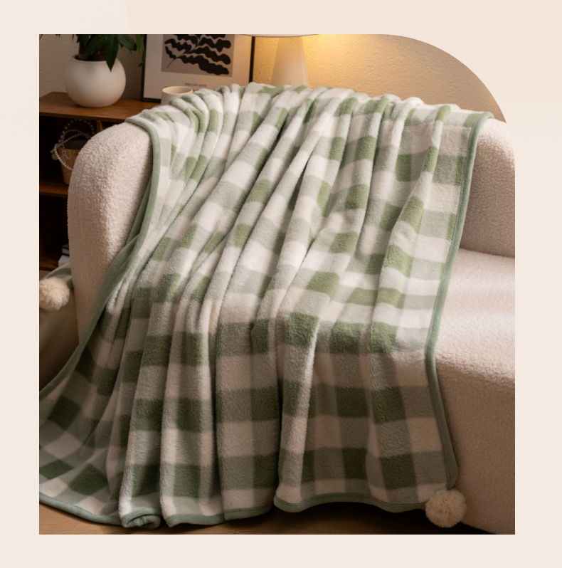 寐居家纺 2025新款羊圈绒双层复合毛毯毯子 方格-绿