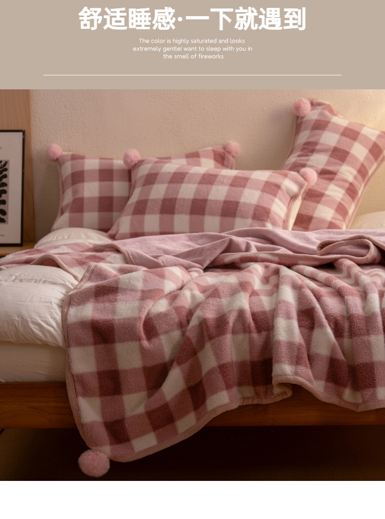 商品名称:寐居家纺 2025新款羊圈绒双层复合毛毯毯子 方格-绿