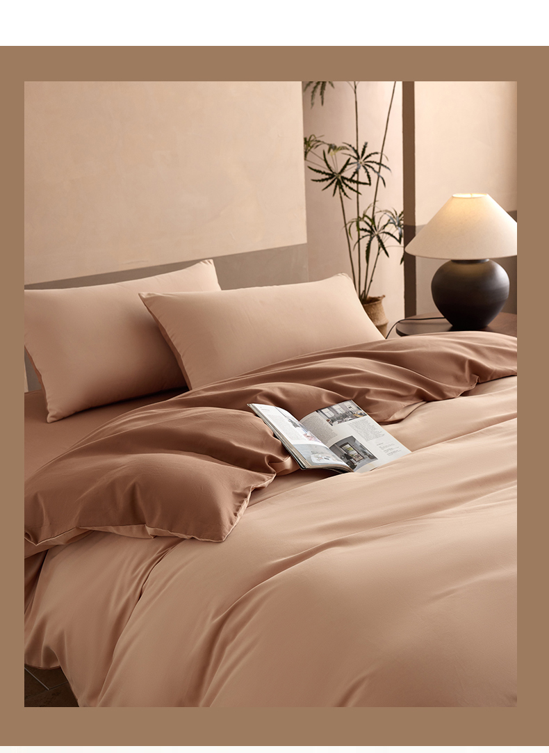 商品名称:寐居家纺 2025新款A类100支全棉贡缎磨毛纯色双拼四件套-熙梦 熙梦-巧克力