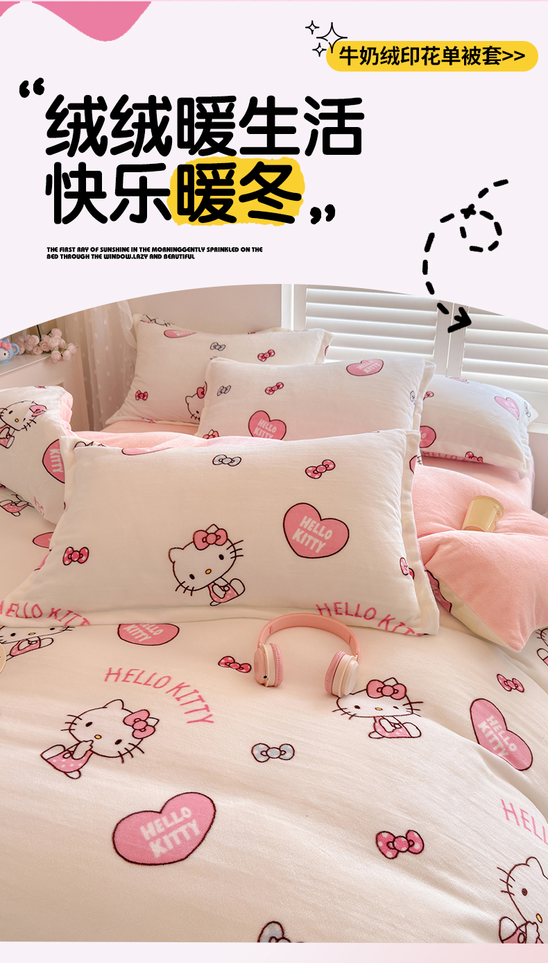 名兮家居 2025新款经典奥特曼-三丽鸥加厚牛奶绒单被套 甜心kt