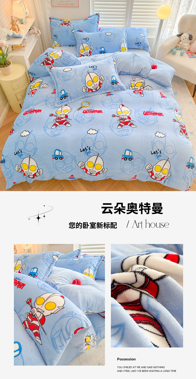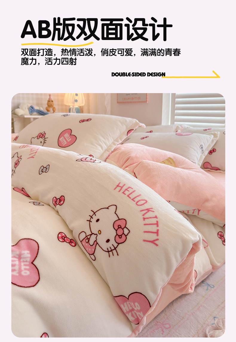 • 91家纺网 家纺一手货源 找家纺 名兮家居 2025新款经典奥特曼-三丽鸥加厚牛奶绒单被套 甜心kt