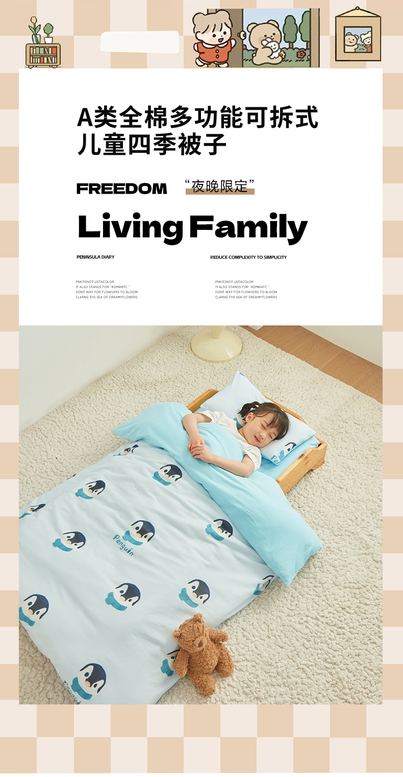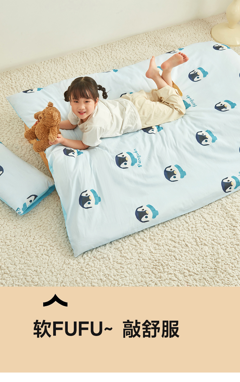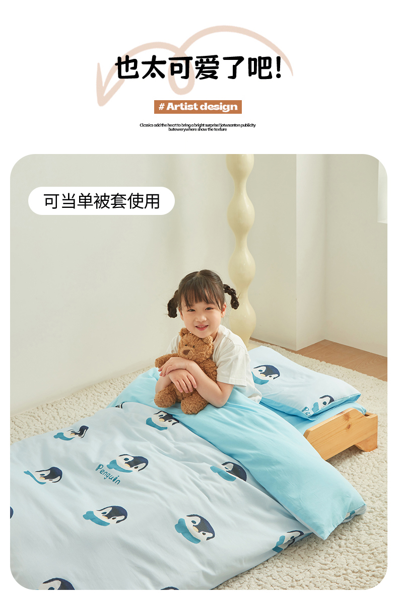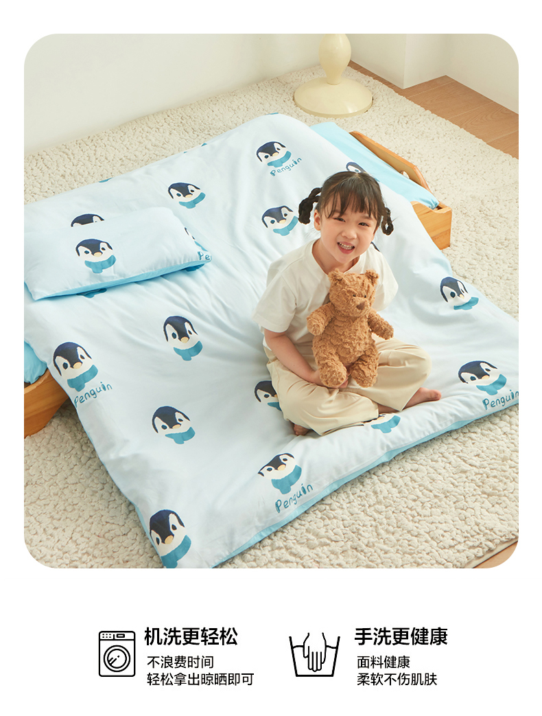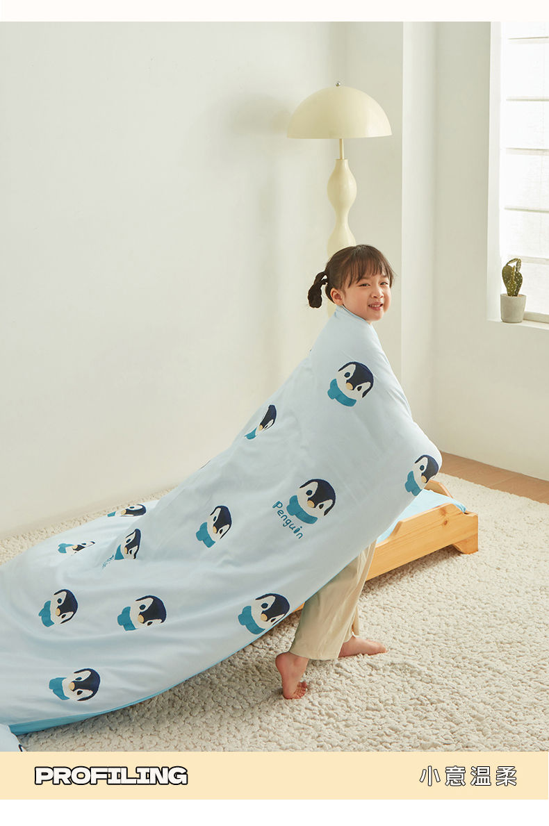 • 91家纺网 家纺一手货源 找家纺 艾佳宝贝 2025新款A类全棉多功能可拆卸儿童盖毯四季被子 乖萌小企鹅