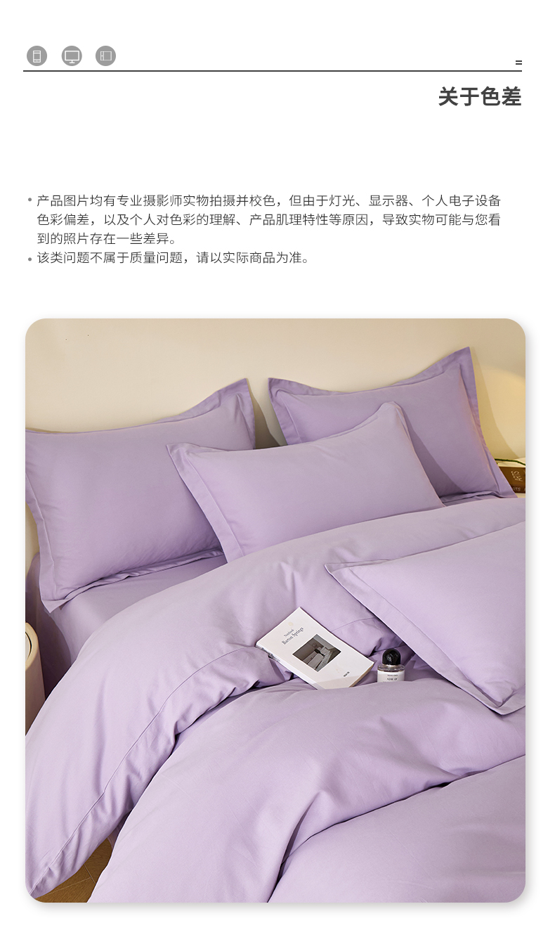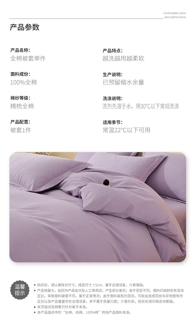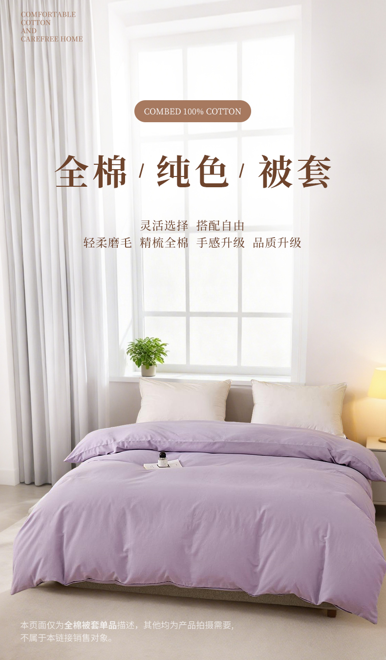 商品名称:元元家居(元元被业) 2025新款全棉纯棉磨毛纯色单被套 慕山紫