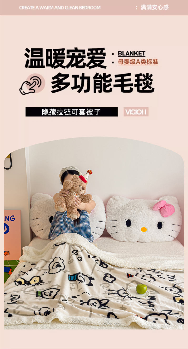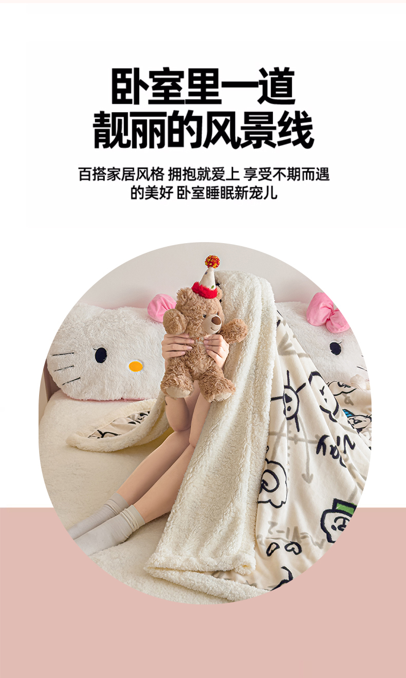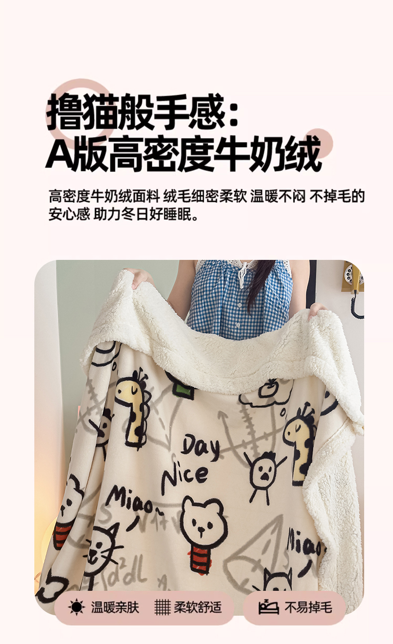 艾特你 2025新款ins羊羔绒牛奶绒可被套休闲毯单被套-毯子图 组合