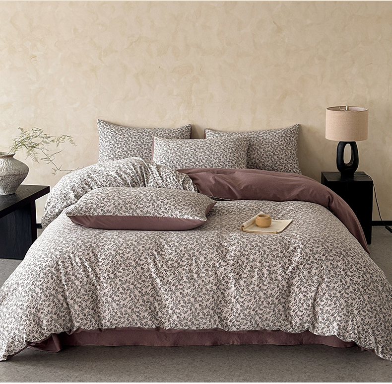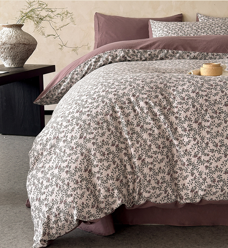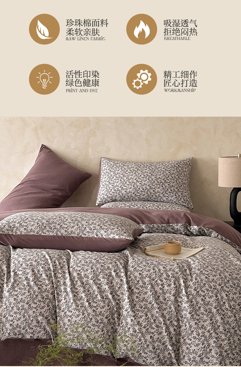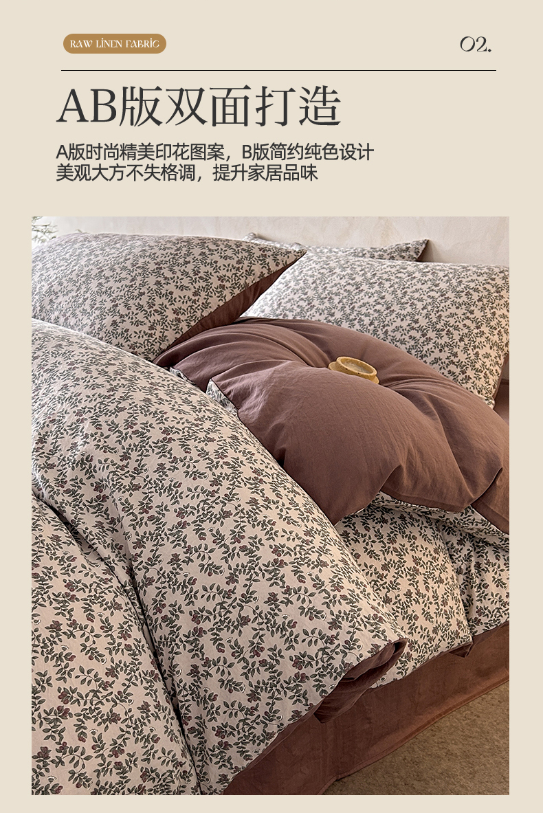 (总)如约 2025新款A类亲肤水洗原麻印花四件套,枫林晚,风木槿咖,慕雪红,锦瑟,迪奥咖,俏颜,可颂咖,可颂灰,风木槿紫,迪奥兰,可颂绿