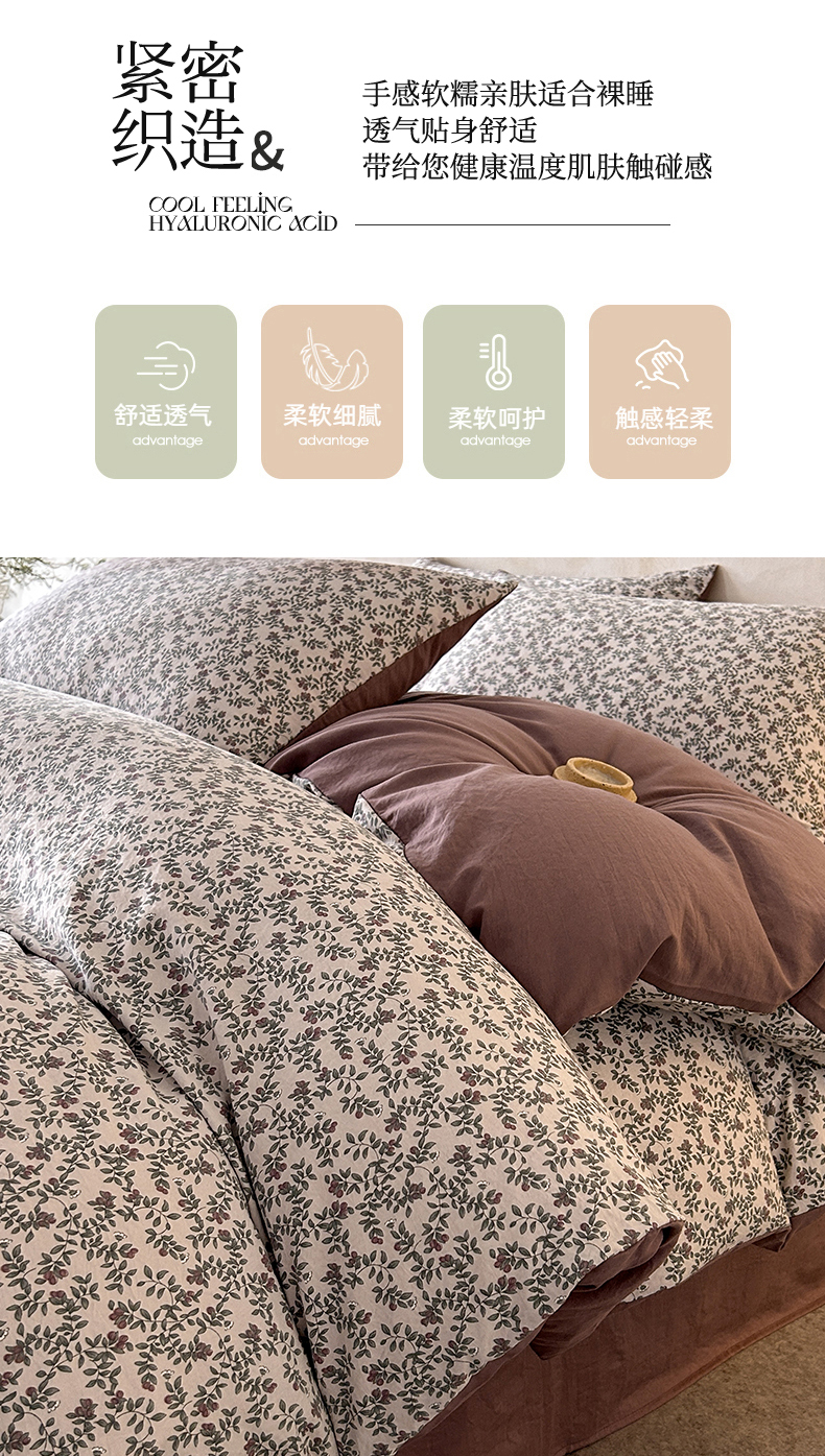 (总)如约 2025新款木棉双层纱印花四件套,小花蔷薇粉,春日来信,朝颜,邂逅,露华浓,草木集黄,写意兰,旧日告白,往事咖,罗格先生兰,小花巧克力棕,小花抹茶绿