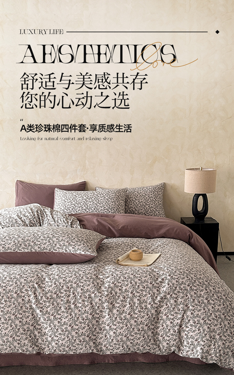 商品名称:如约 2025新款A类珍珠棉四件套 庭院春深