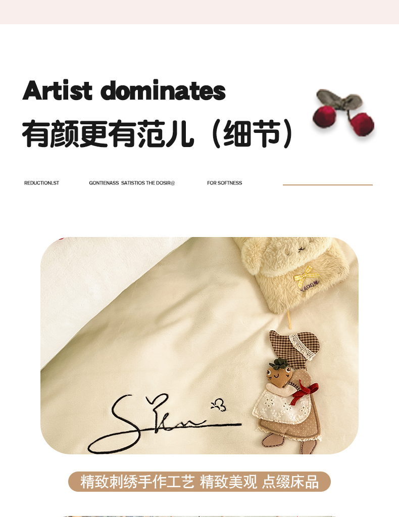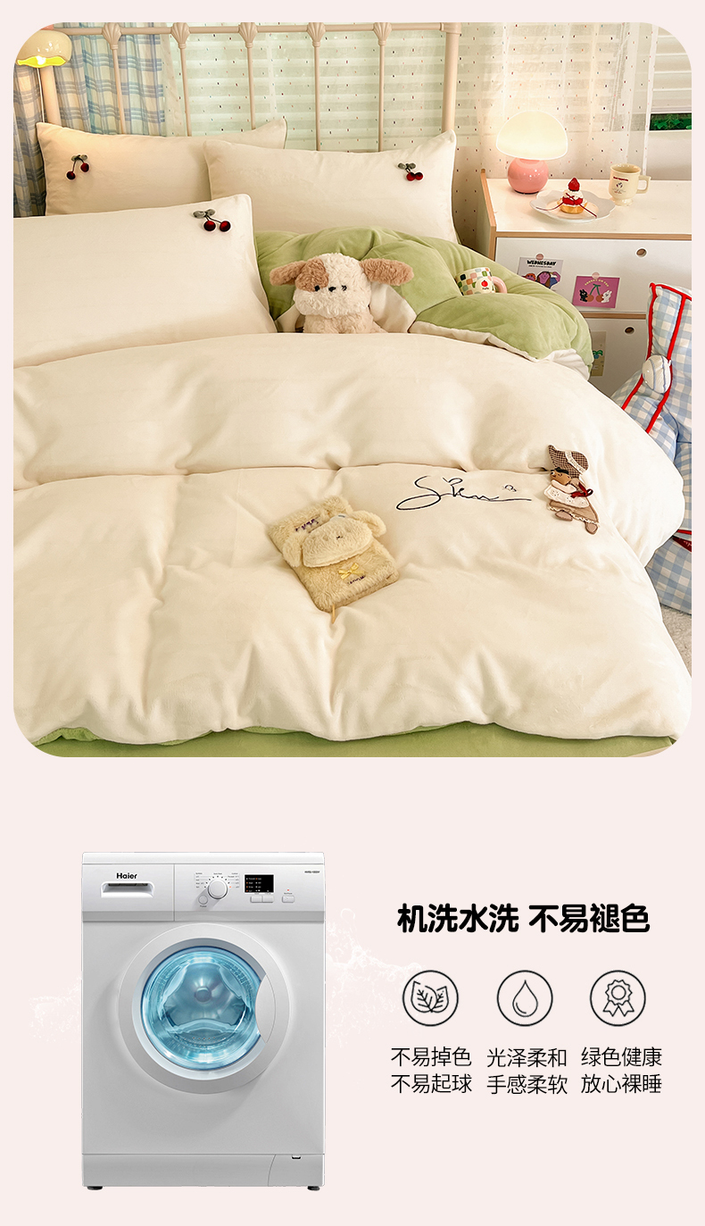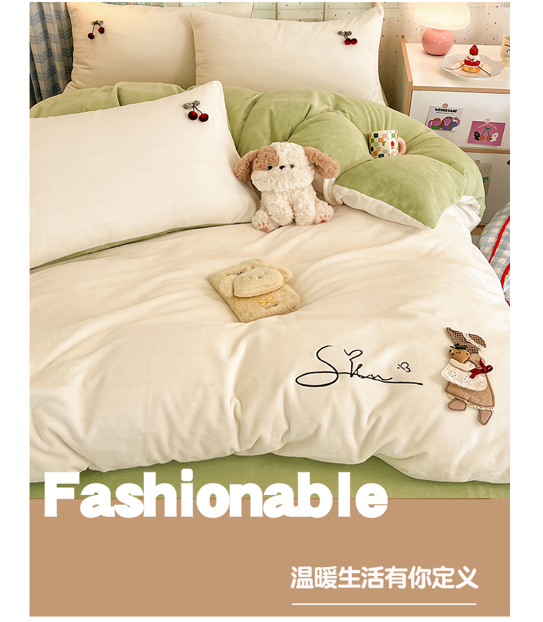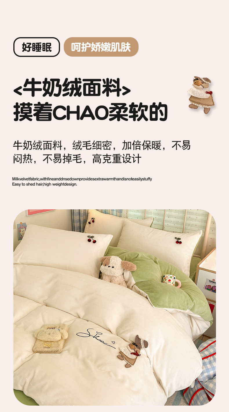 (总)羚羊语家纺 2025新款牛奶绒手作款樱桃女孩四件套毛巾绣刺绣花秋冬加厚法莱绒法兰绒珊瑚绒三件套(买家秀请联系客服!),手作女孩-奶油粉,毛巾绣-平古企鹅,手作女孩-柔雾紫,毛巾绣-自由大鹅,毛巾绣-腊肠狗,手作女孩-燕麦奶,手作女孩-清新绿