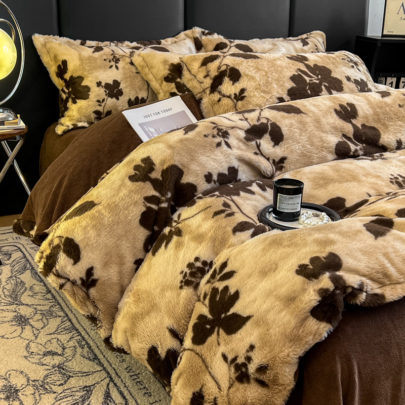典曼家纺 2025新款亲肤舒适兔毛绒四件套 豹纹-咖