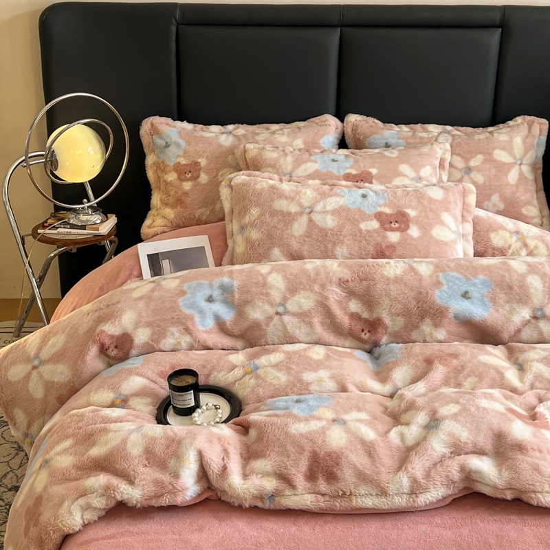 商品名称:典曼家纺 2025新款亲肤舒适兔毛绒四件套 花枝-咖