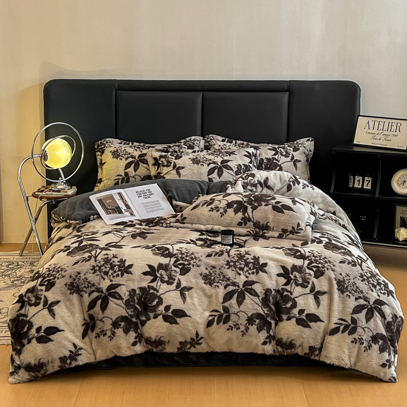 典曼家纺 2025新款亲肤舒适兔毛绒四件套 花枝-咖