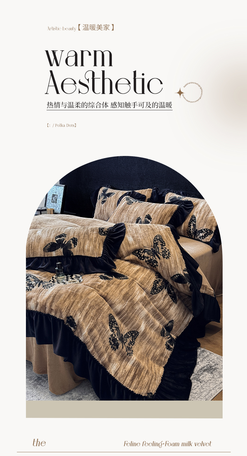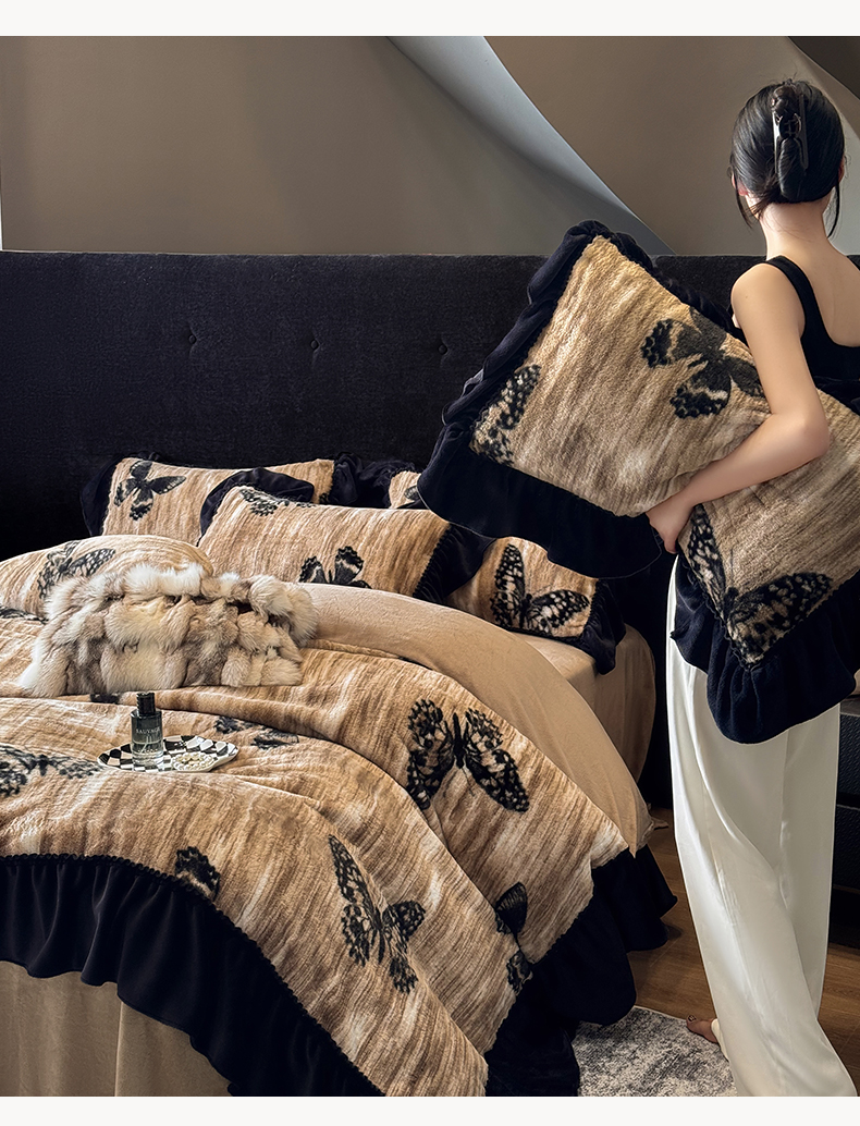 当前位置: 91家纺网 > 商品网购 > 床品套件 > 四件套 > 牛奶绒四件套 > 优悦生活馆 2025新款兔毛绒牛奶绒保暖四件套 蝶纹