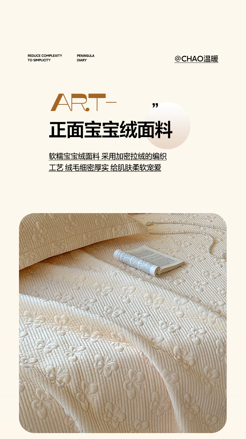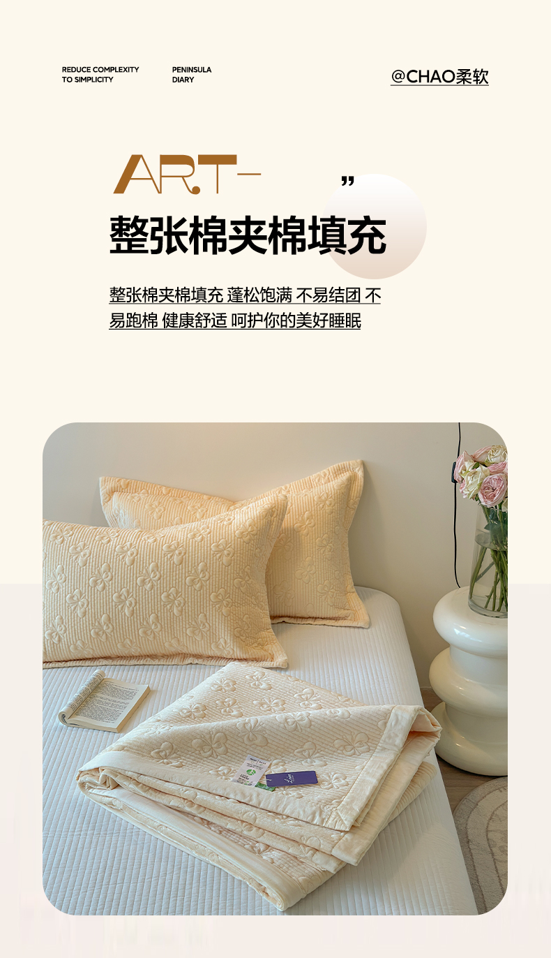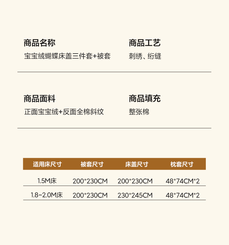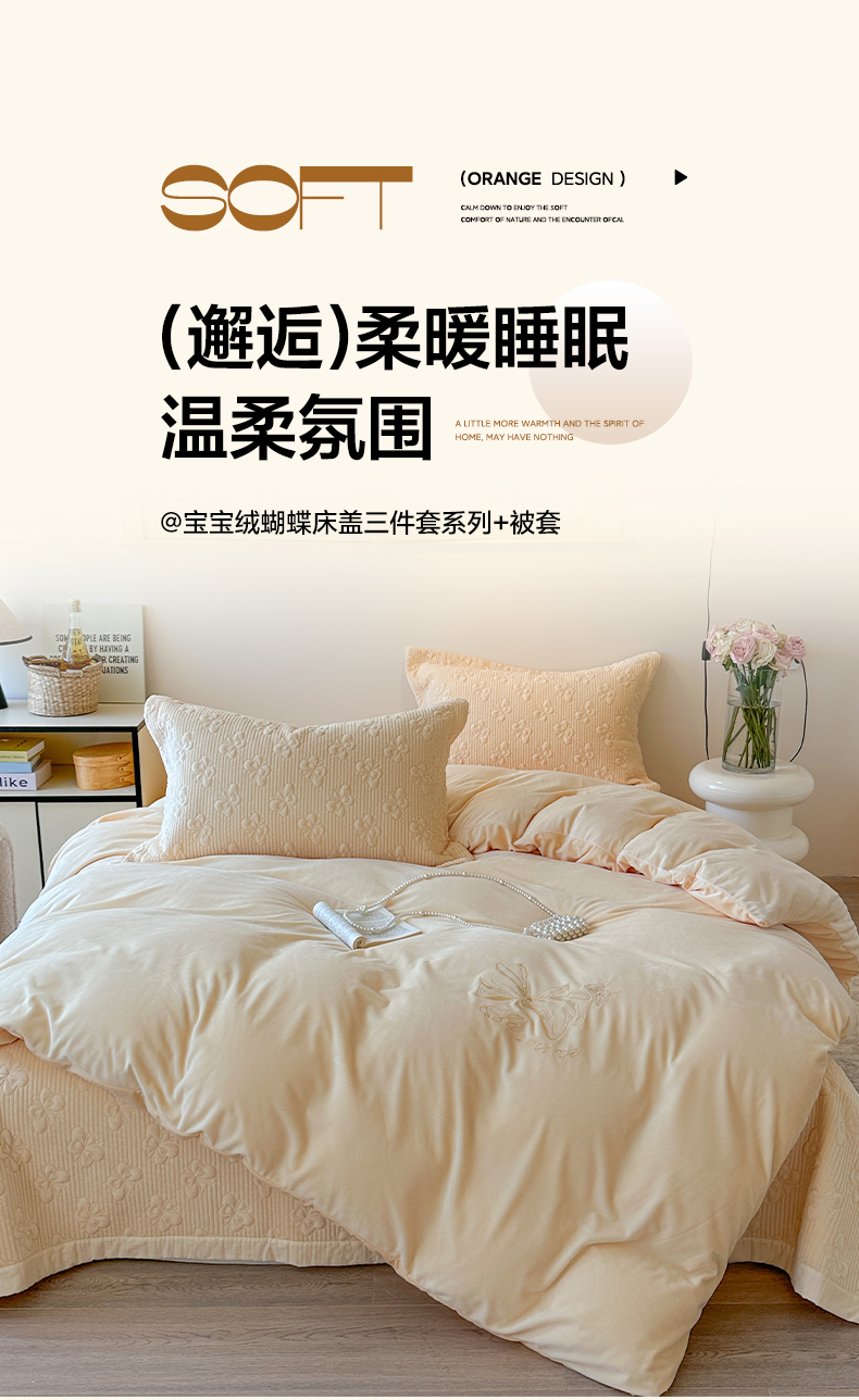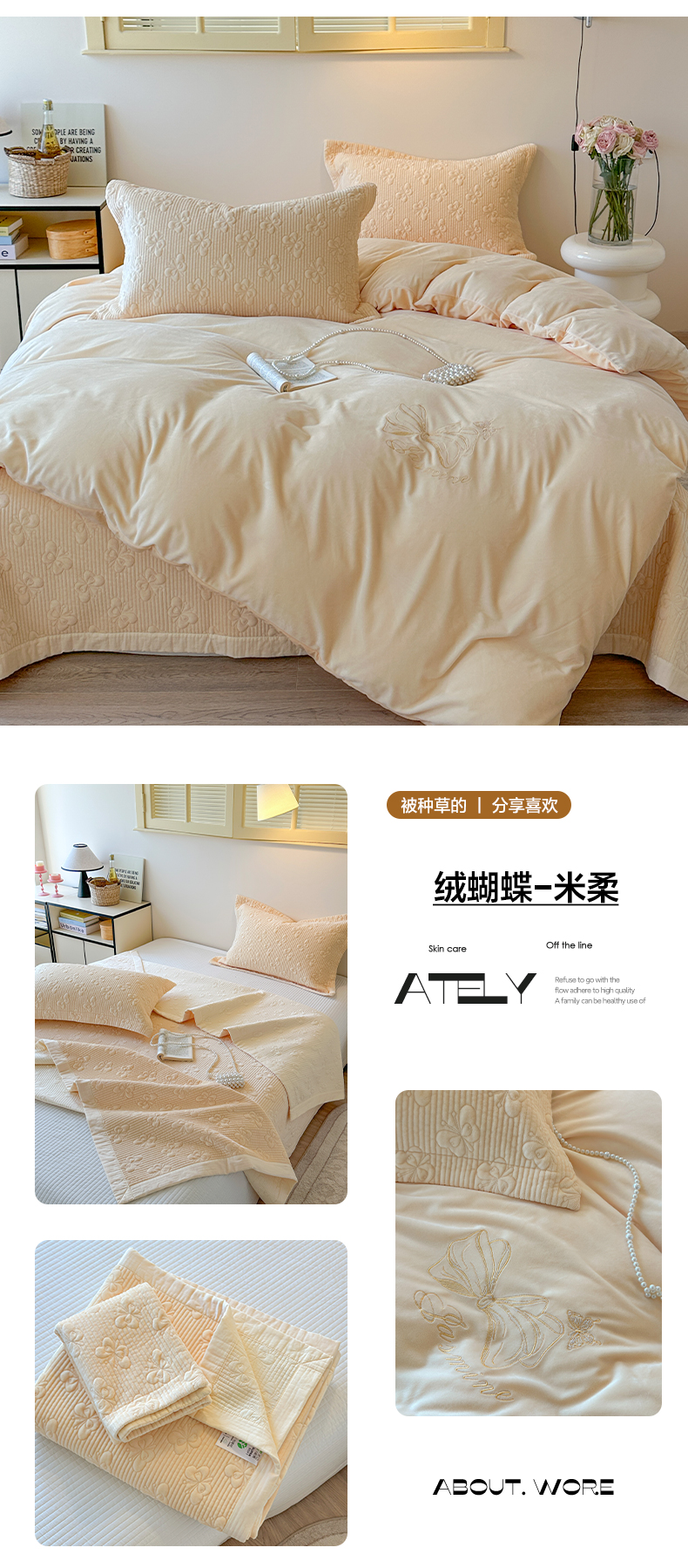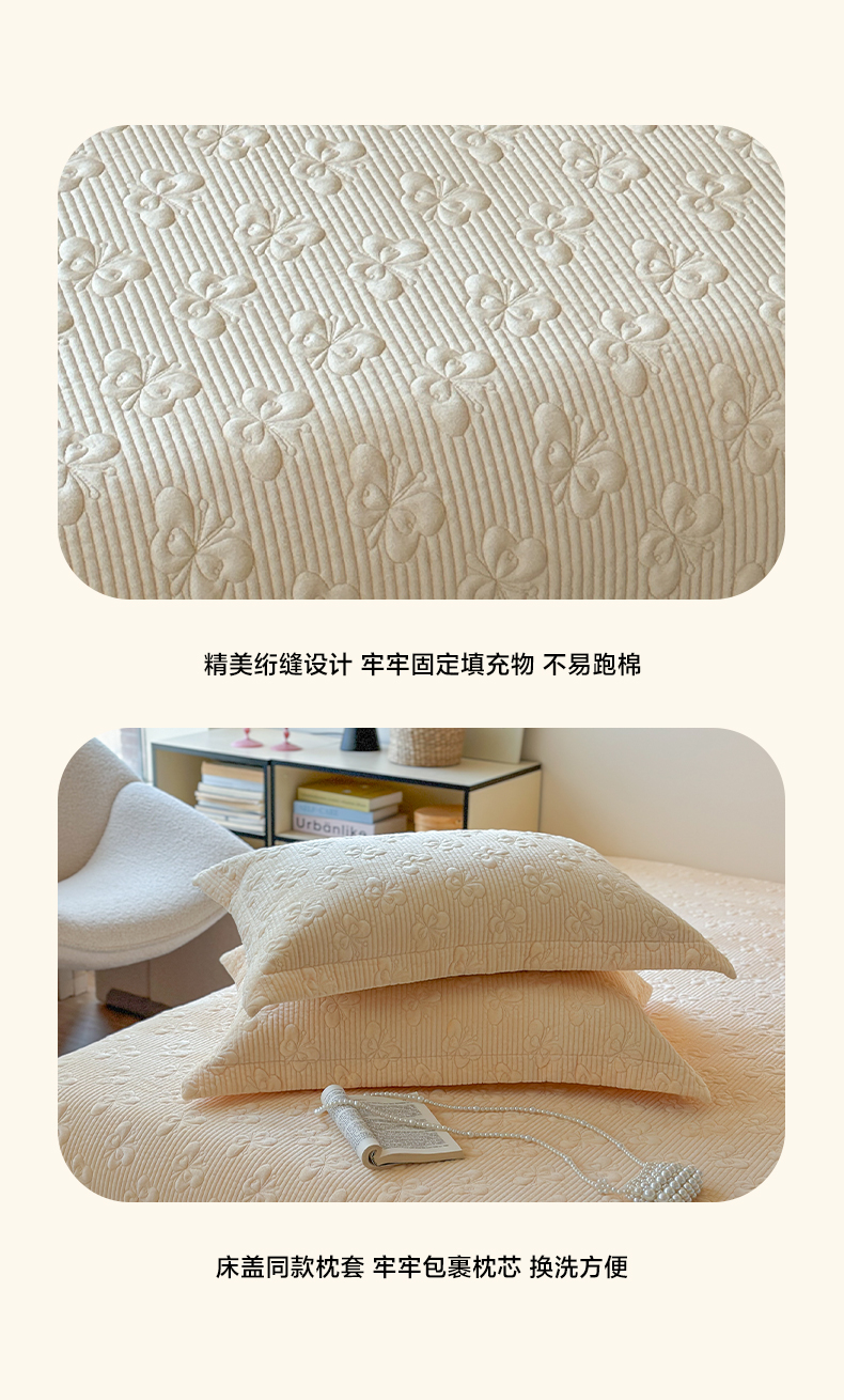 商品名称:琳可家居 2025新款蝴蝶系列棉加绒床盖 绒蝴蝶-米柔