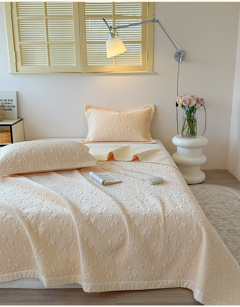 琳可家居 2025新款蝴蝶系列棉加绒床盖 绒蝴蝶-米柔