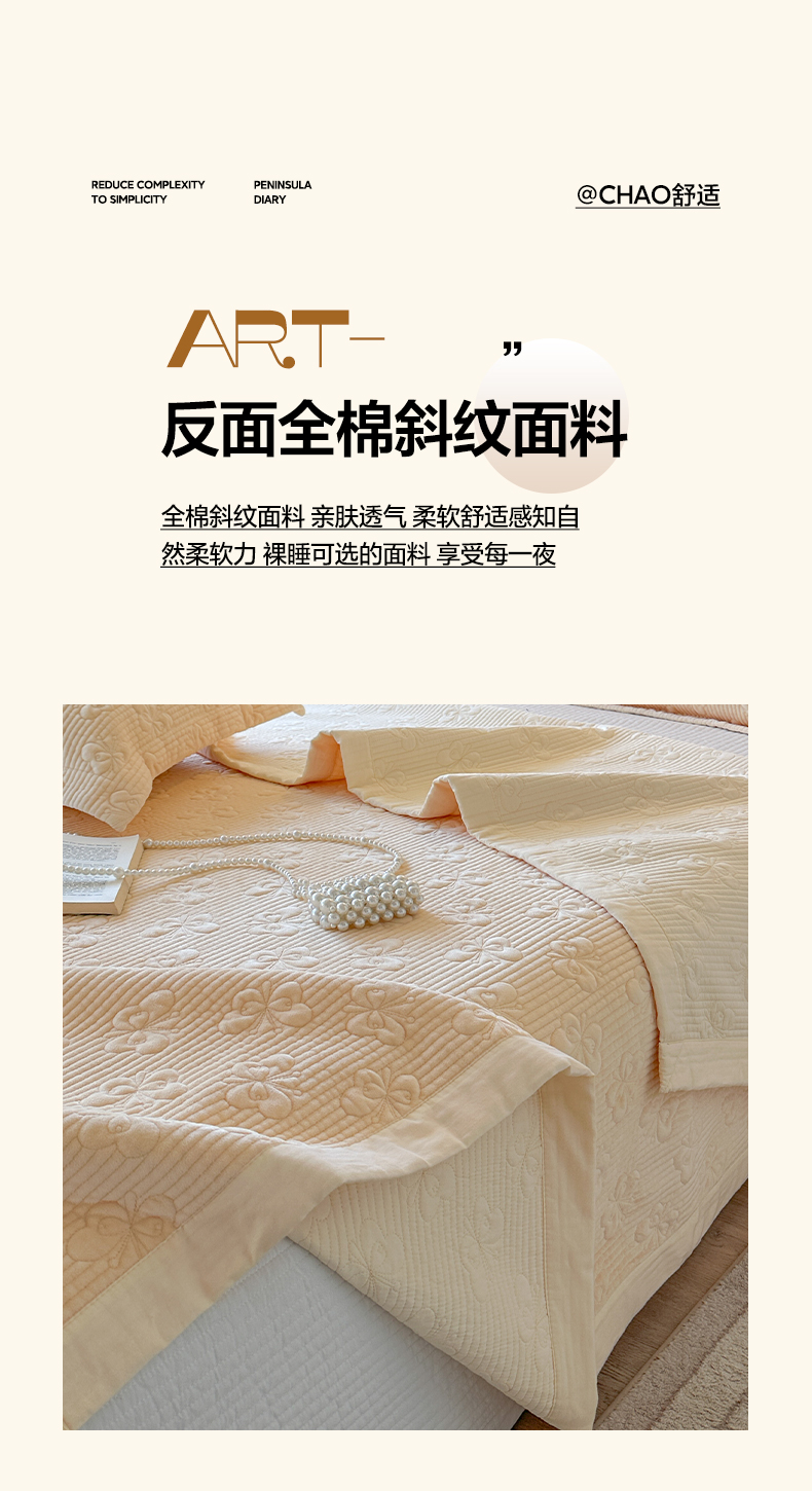 (总)琳可家居 2026新款60S长绒棉花边床盖A类双面全棉高温水洗-蝶恋系列,蝶恋-暖白,蝶恋-卡其,蝶恋-雾粉,组合