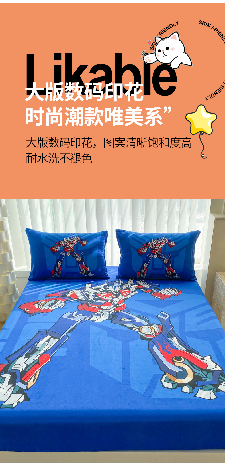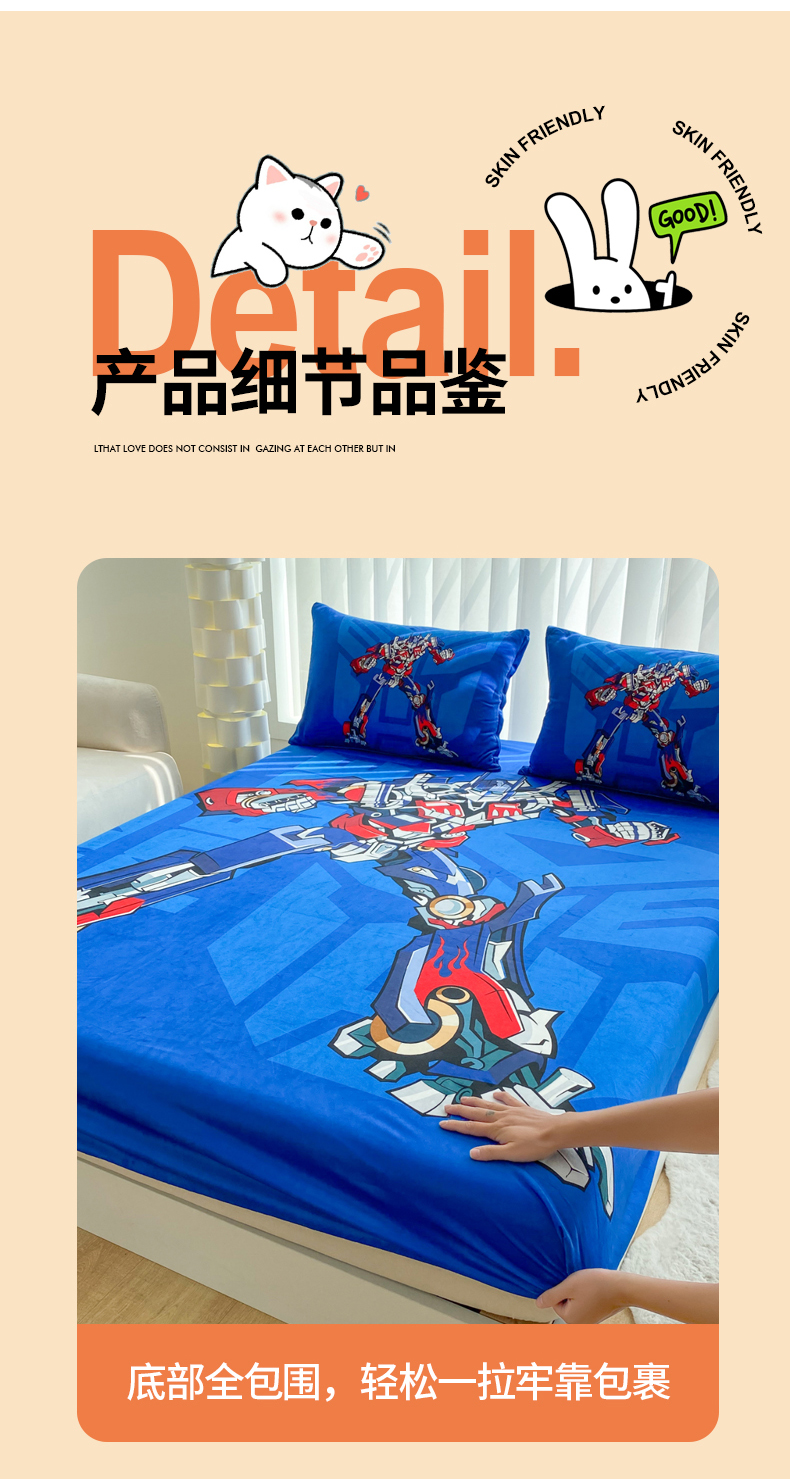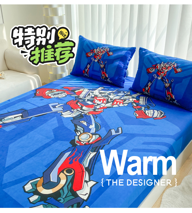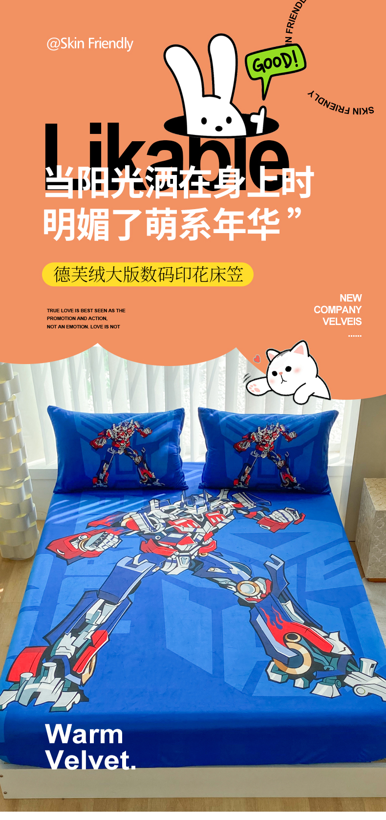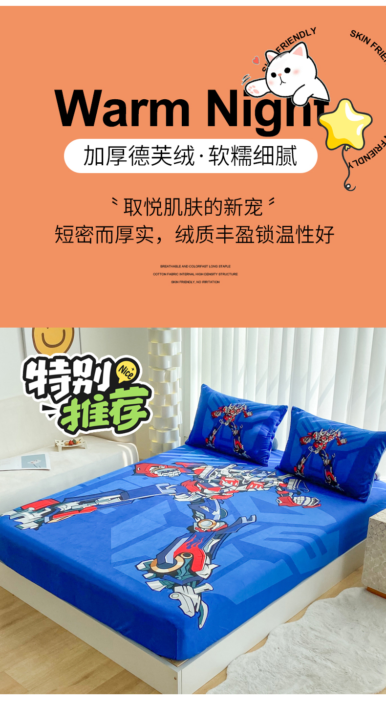 一电 2025新款跨境电商床笠冬天德芙绒床笠单件加绒加厚绒床罩儿童学生宿舍床垫套床笠罩 擎天柱
