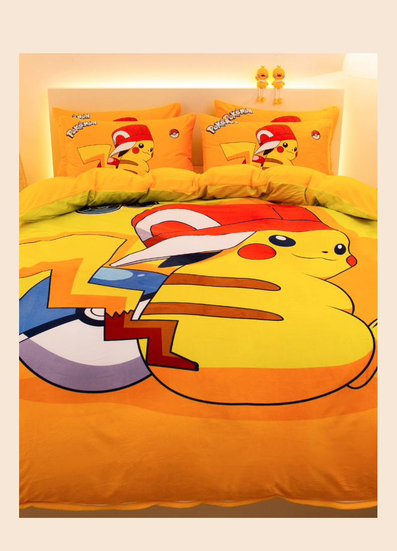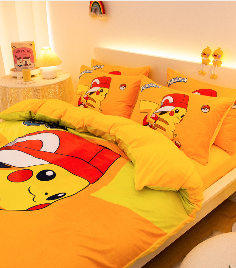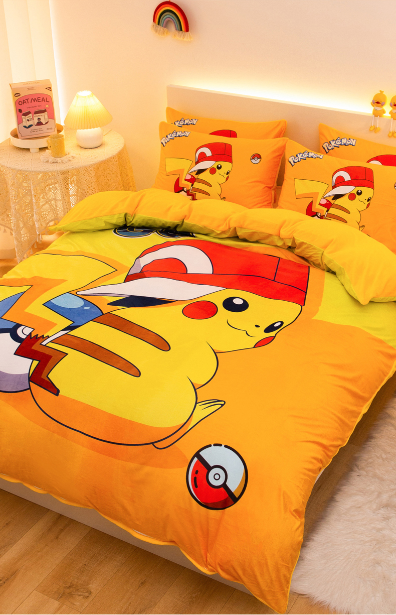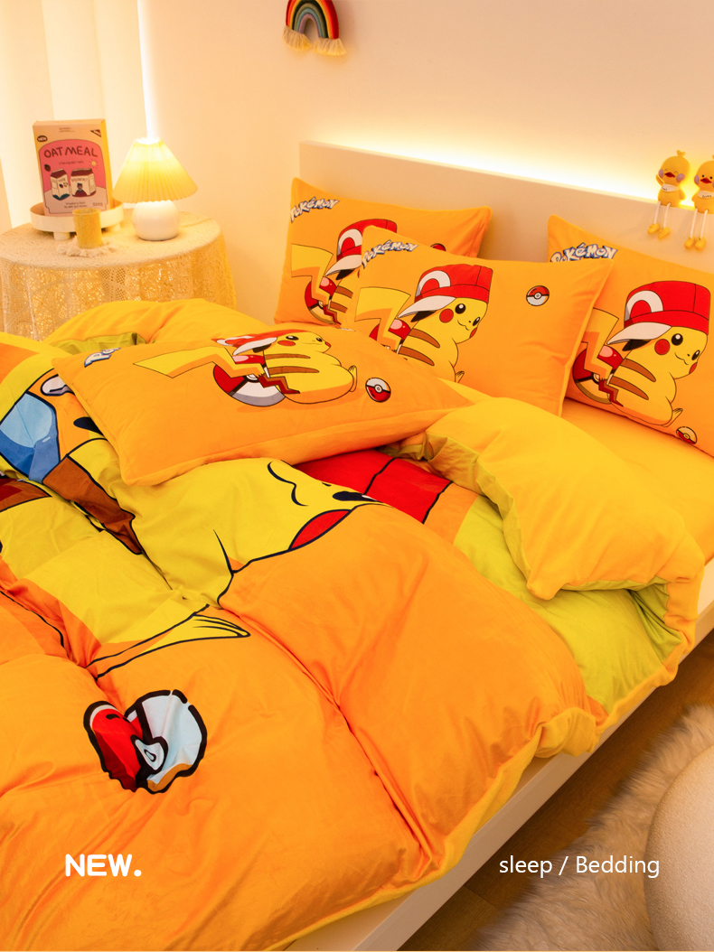 一电 2025外贸跨境电商儿童卡通床上四件套亲肤牛奶绒学生三件床单被套加大珊瑚宝宝卡通 小红帽皮卡丘
