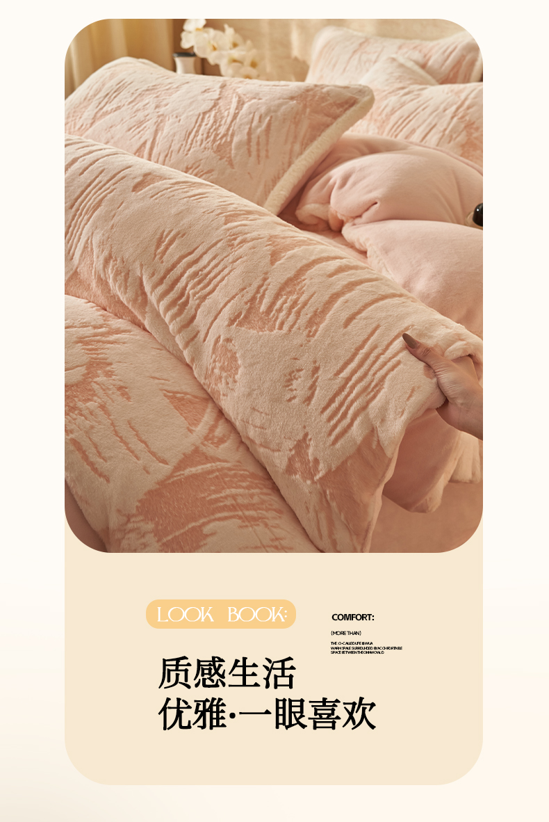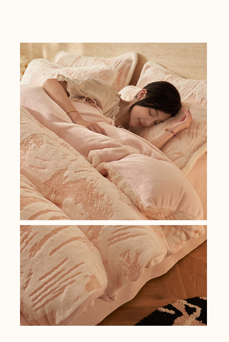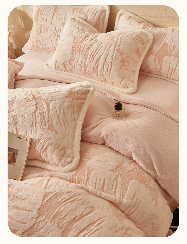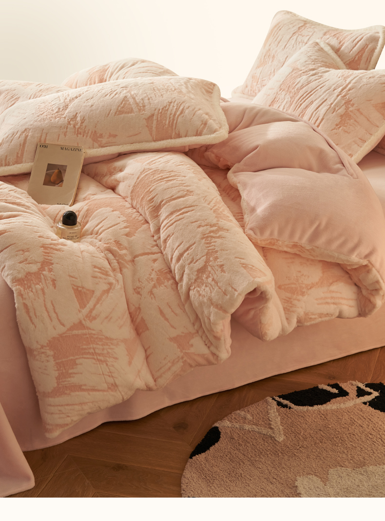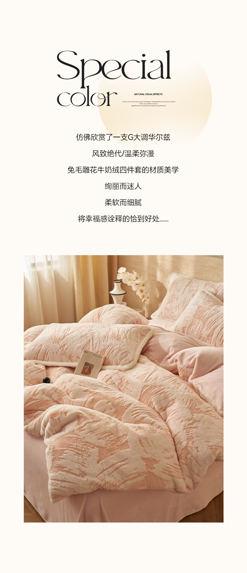 当前位置: 91家纺网 > 商品网购 > 床品套件 > 四件套 > 雕花绒四件套 > 寐绸家纺 2025秋冬新款350g兔毛雕花牛奶绒四件套 炫彩-粉