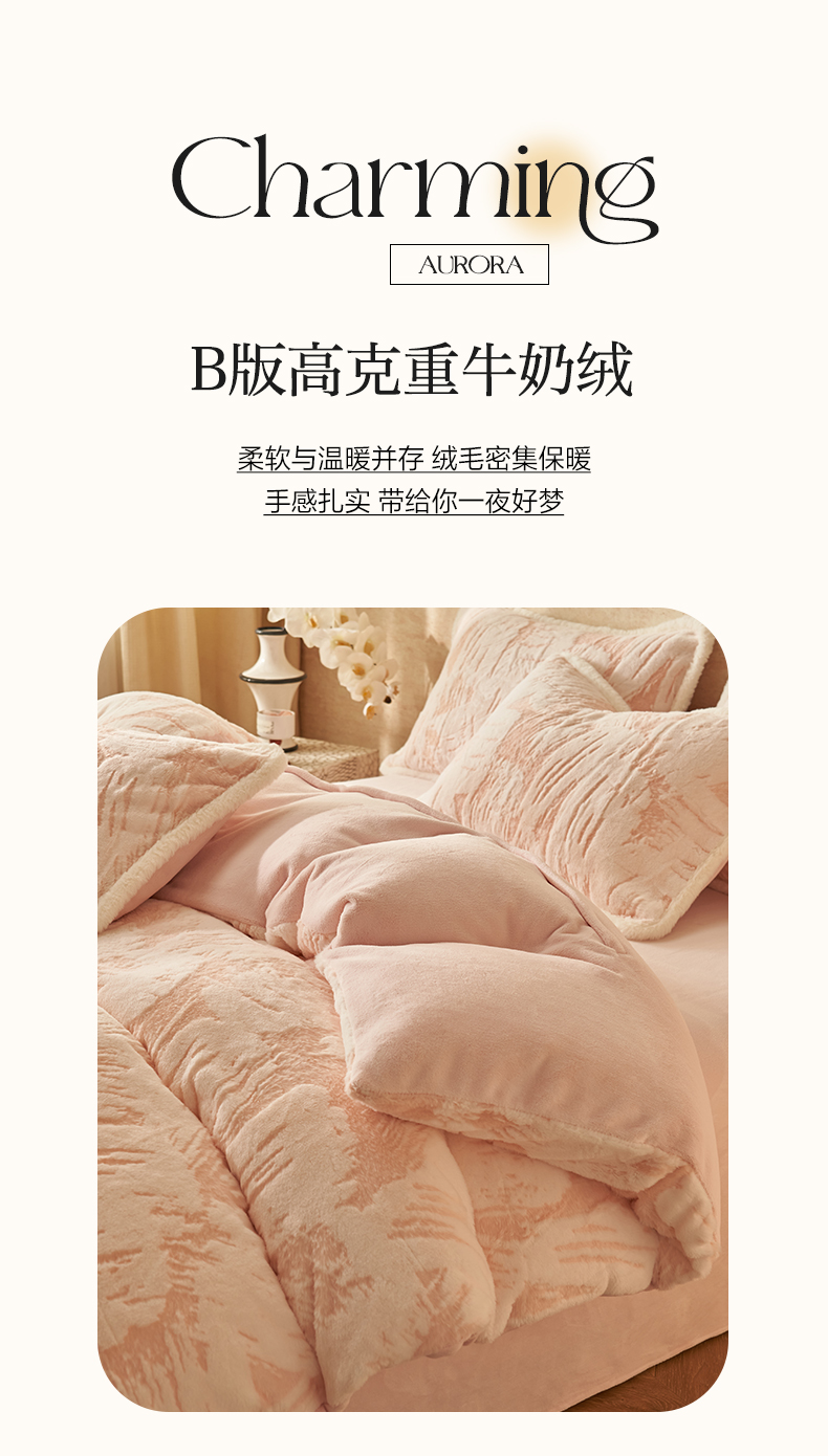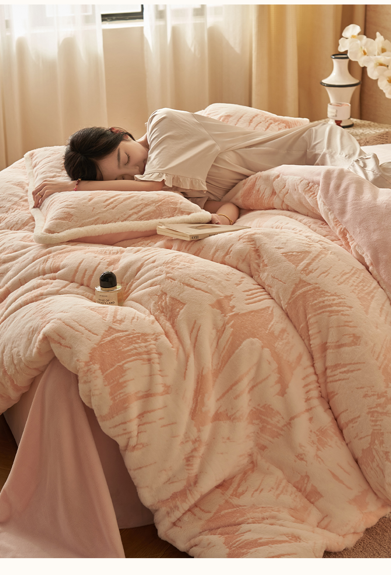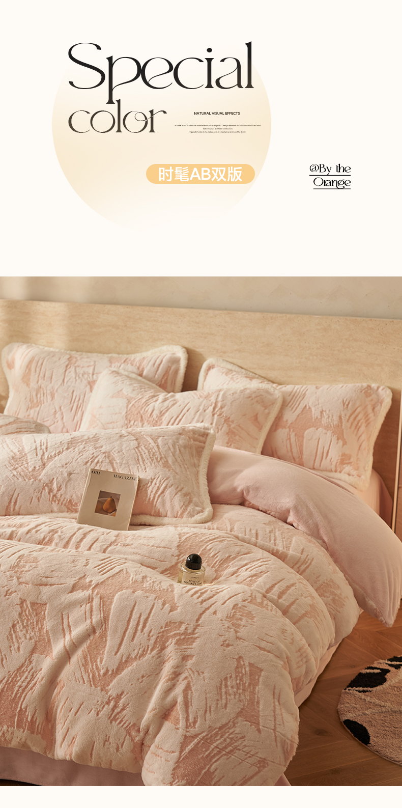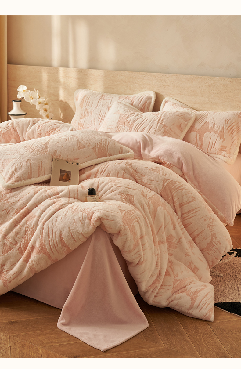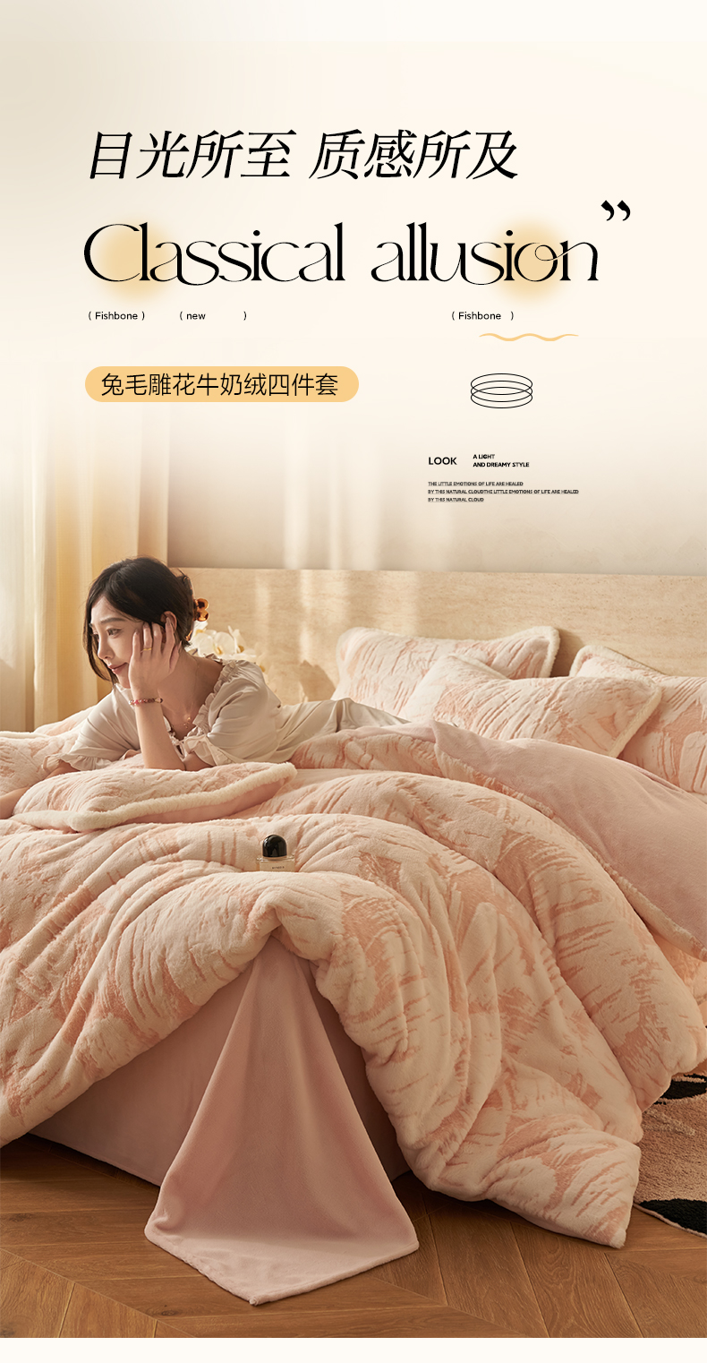 当前位置: 91家纺网 > 商品网购 > 床品套件 > 四件套 > 雕花绒四件套 > 寐绸家纺 2025秋冬新款350g兔毛雕花牛奶绒四件套 炫彩-粉