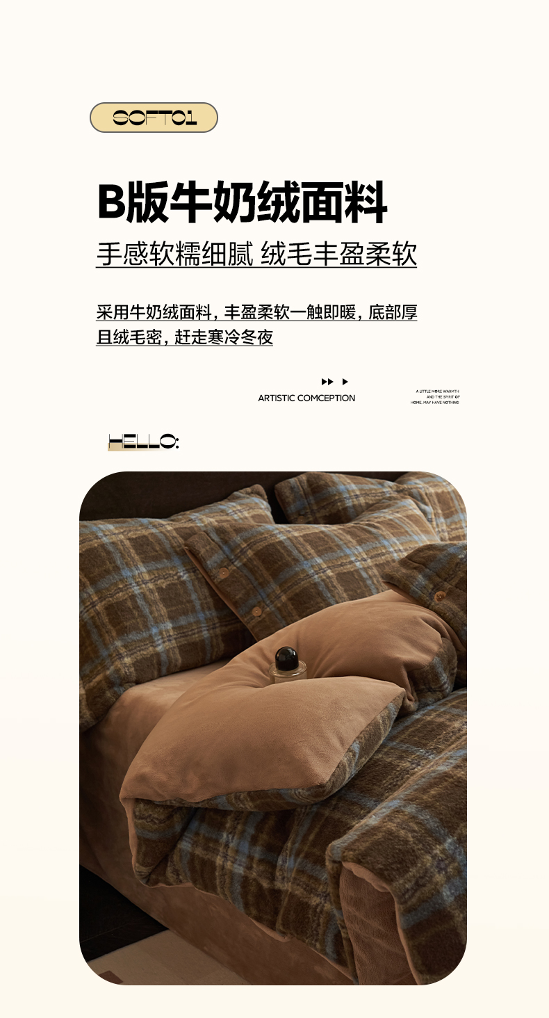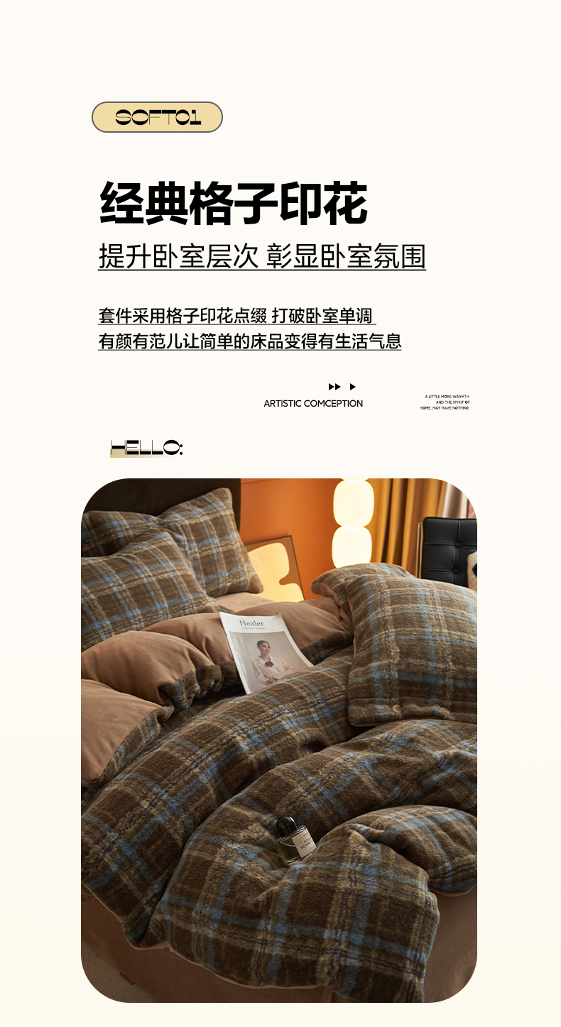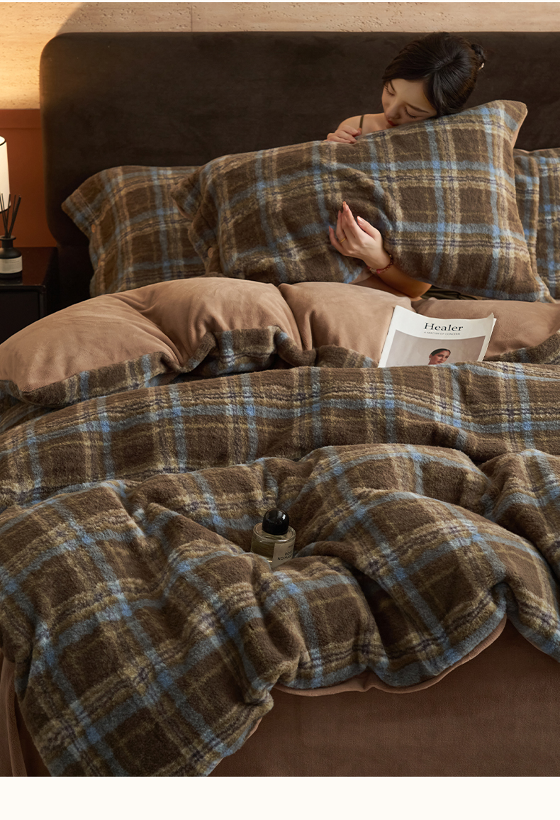 当前位置: 91家纺网 > 商品网购 > 床品套件 > 四件套 > 牛奶绒四件套 > 寐绸家纺 2025秋冬新款230g羊驼绒复古格牛奶绒四件套 维系咖格