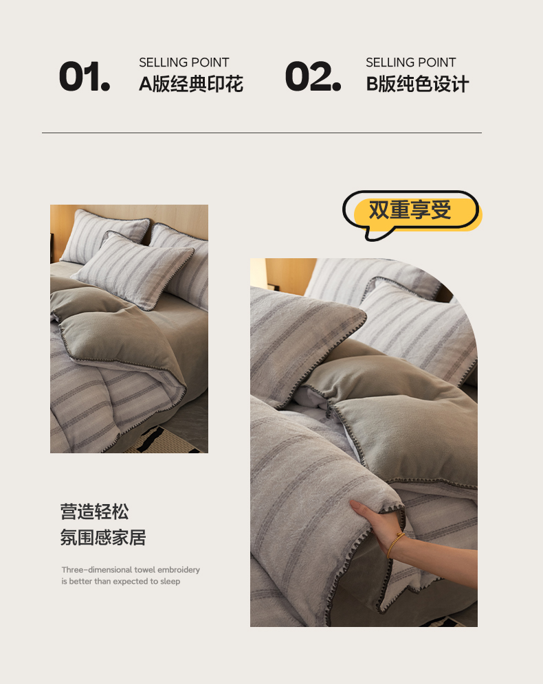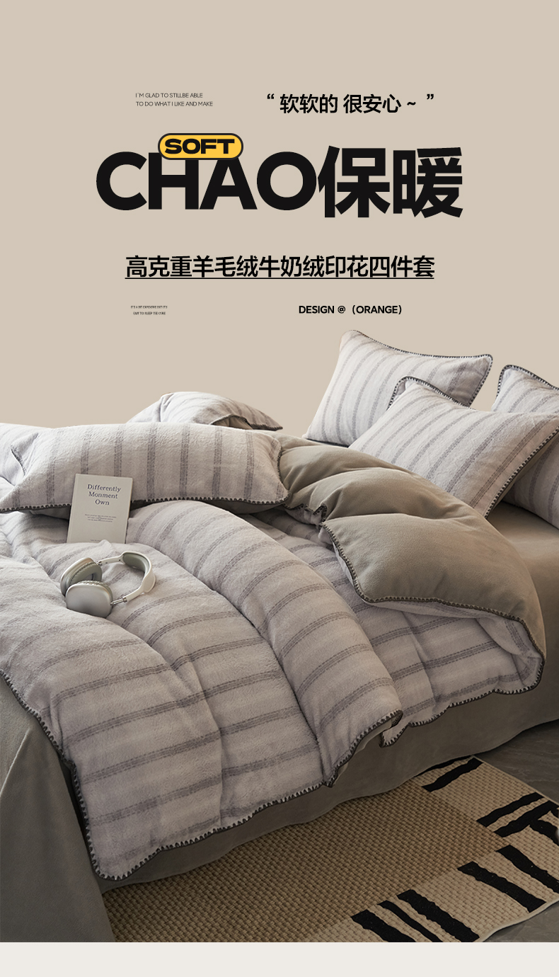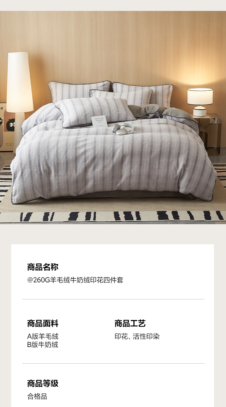 当前位置: 91家纺网 > 商品网购 > 床品套件 > 四件套 > 其它四件套 > 寐绸家纺 2025秋冬新款230g羊毛绒牛奶绒简约四件套 羊毛绒-灰色密点