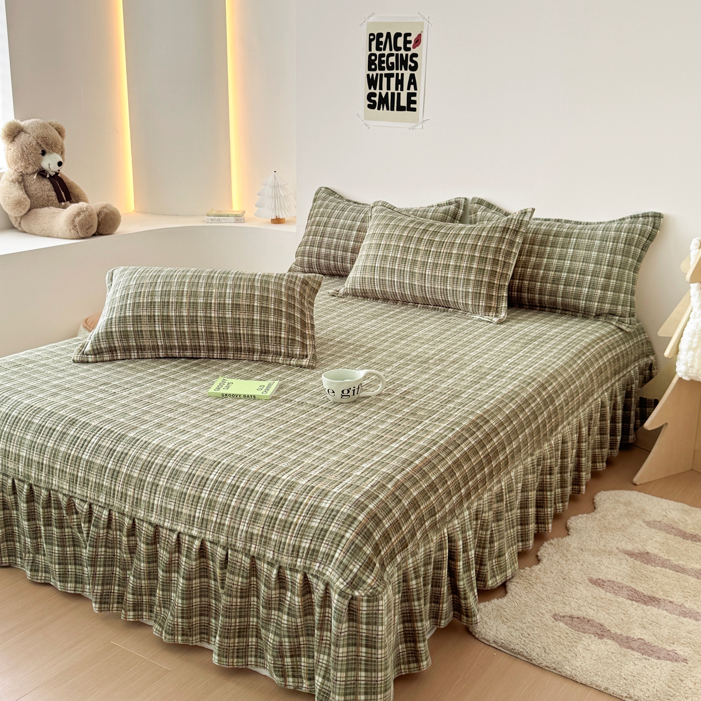 (总)希朵家纺 2025新款木棉皱皱纱多功能床盖四件套,法式庄园粉,法式庄园绿,格子兔,可爱狗狗,浪漫花海绿,满满爱意,田间女孩,熊多多,紫蝴蝶,紫色浪漫
